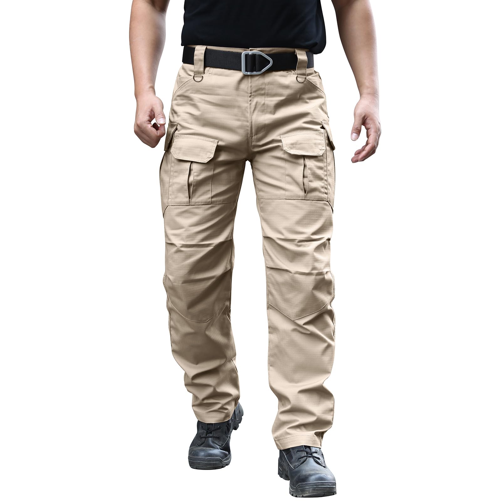 [Stretch Fabric] : Men's cargo tactical pants are made with a stretchy polyester, cotton and spandex blend for mobility and durability. Ripstop fabric provides excellent wear-resistant, water-resistant , stain-resistant, scratch-resistant and dust-resistant. Convenient to outdoor activities, or daily wear. These tactical pants are a loose fit, if you prefer a slimmer fit, please go one size down. (Note: The exclusive Tactical Belt is not included).