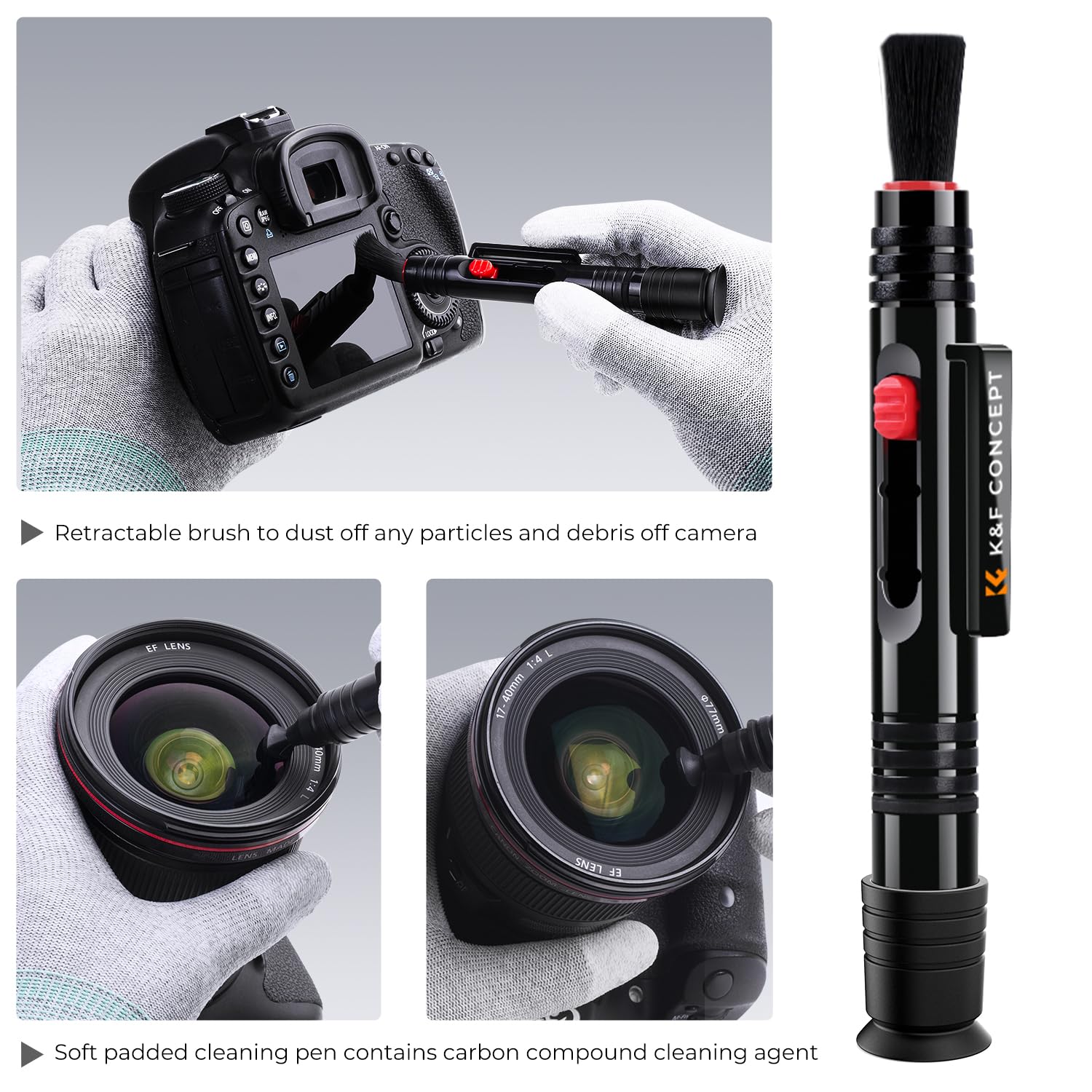 【3-in-1 Cleaning Effect】 This Lens Pen has 3 cleaning parts, a lens cleaning brush, a large cleaning head and a small cleaning head; The 3-in-1 cleaning effect can clean the lens more quickly and effectively, so that the lens is no longer damaged by dust, affecting the picture effect and lens life.