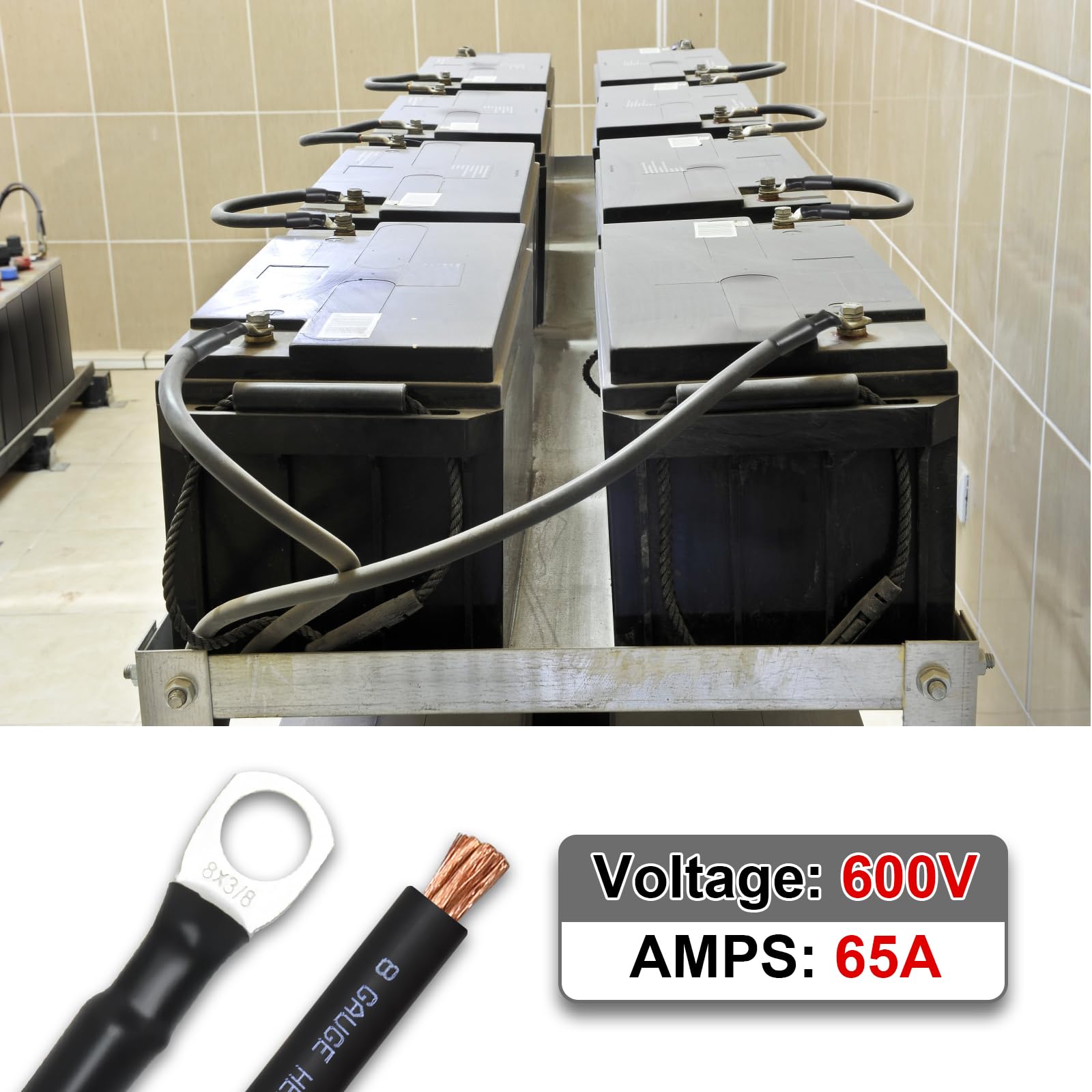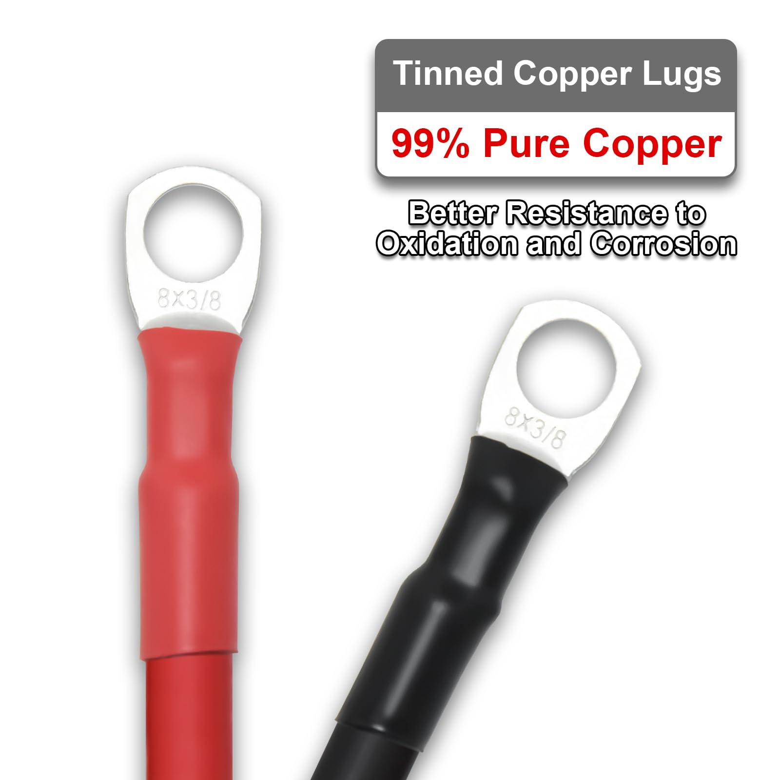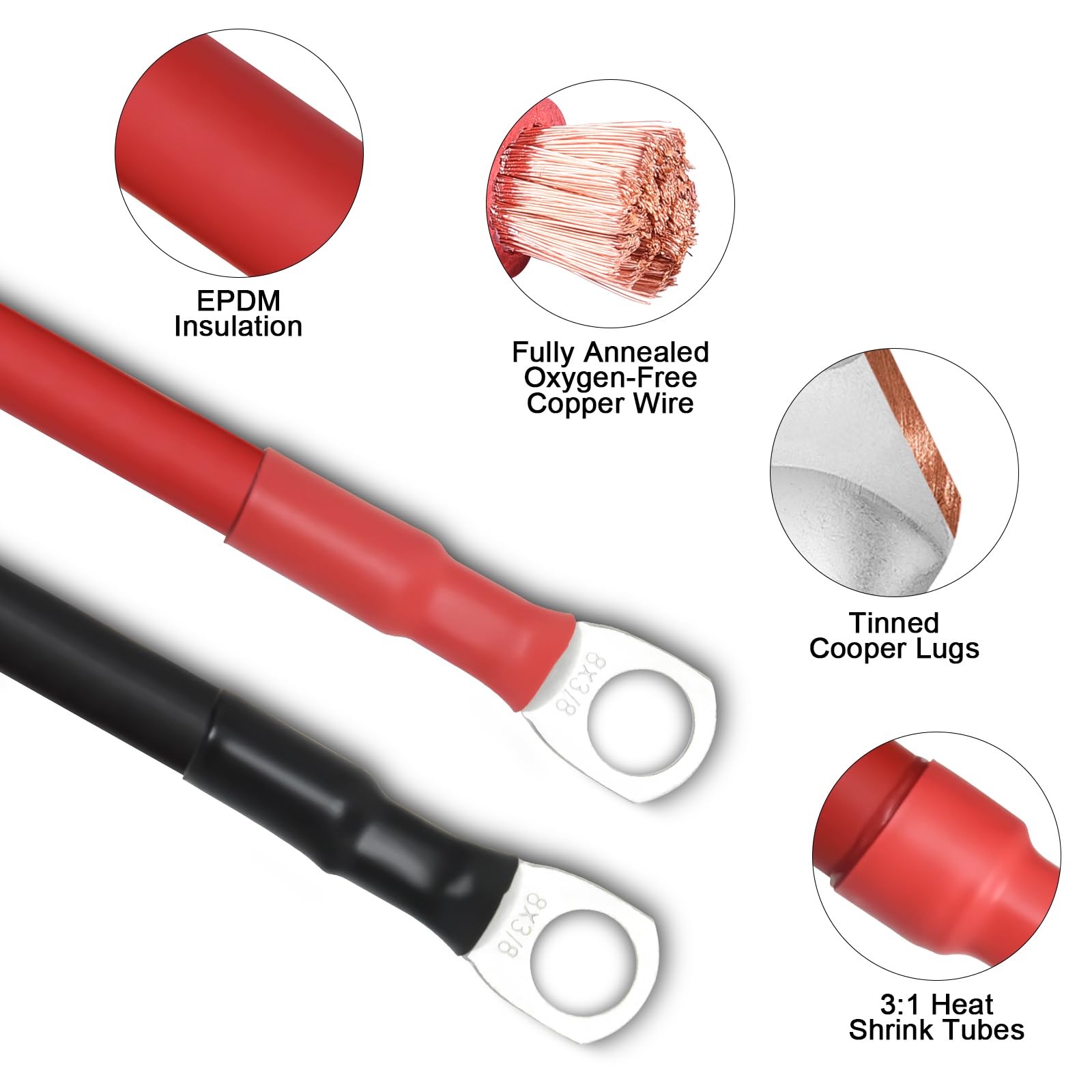 Easy Installation: Both ends of each cable have been pre-installed with 8AWG 3/8" battery lugs and 3:1 heat shrink tubing, which is thicker and stronger than the 2:1 shrink tubing, users can easily complete the installation of the battery cables without the need for professional tools, suitable for DIY projects.