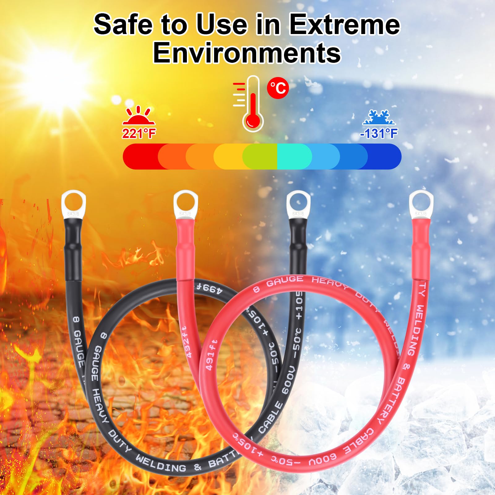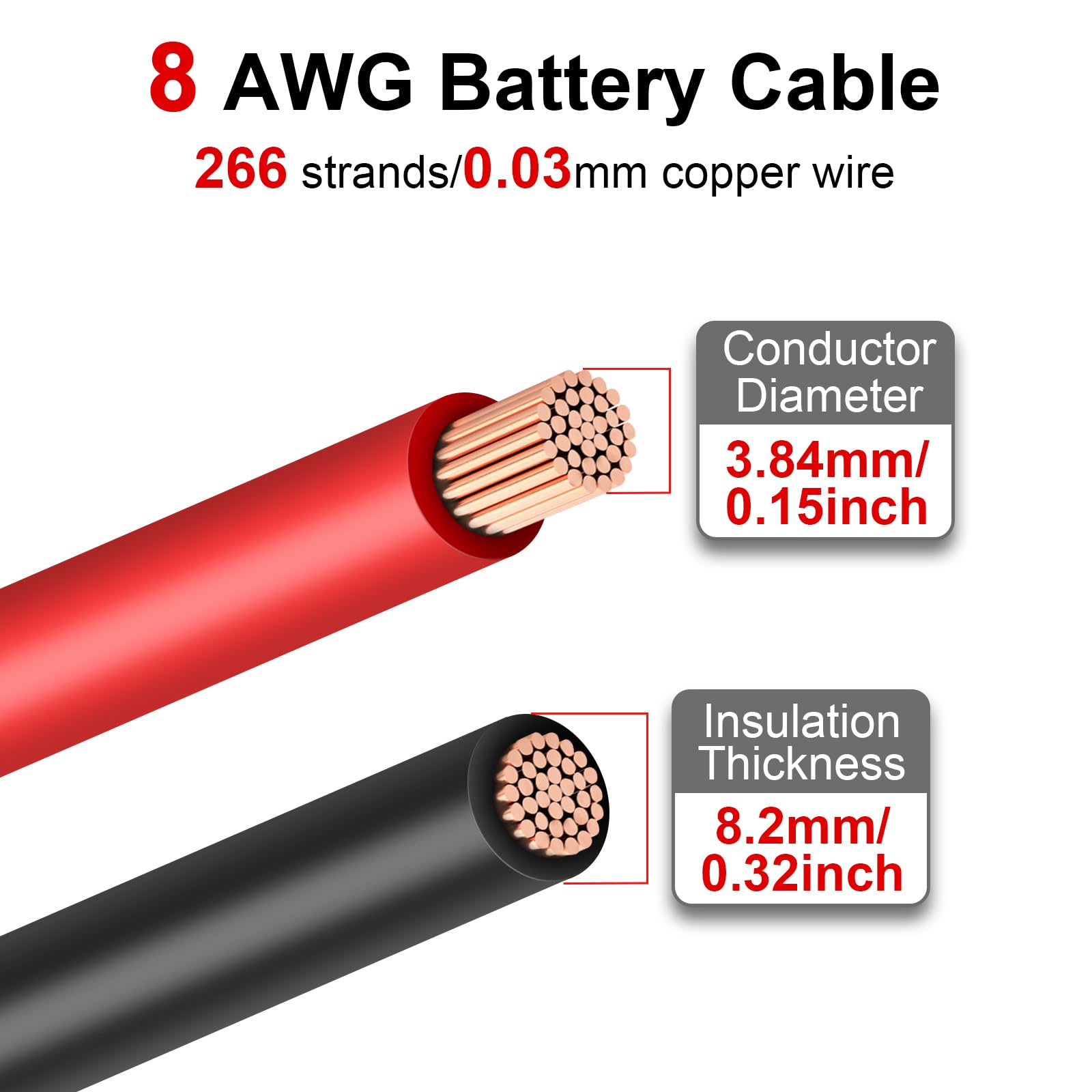 Widely Application: This 8 awg battery cable is designed for various models, compatible with most cars and motorcycles, also suitable for rvs, trucks, trailers, solars, boats and other scenarios, to meet your diverse needs.
