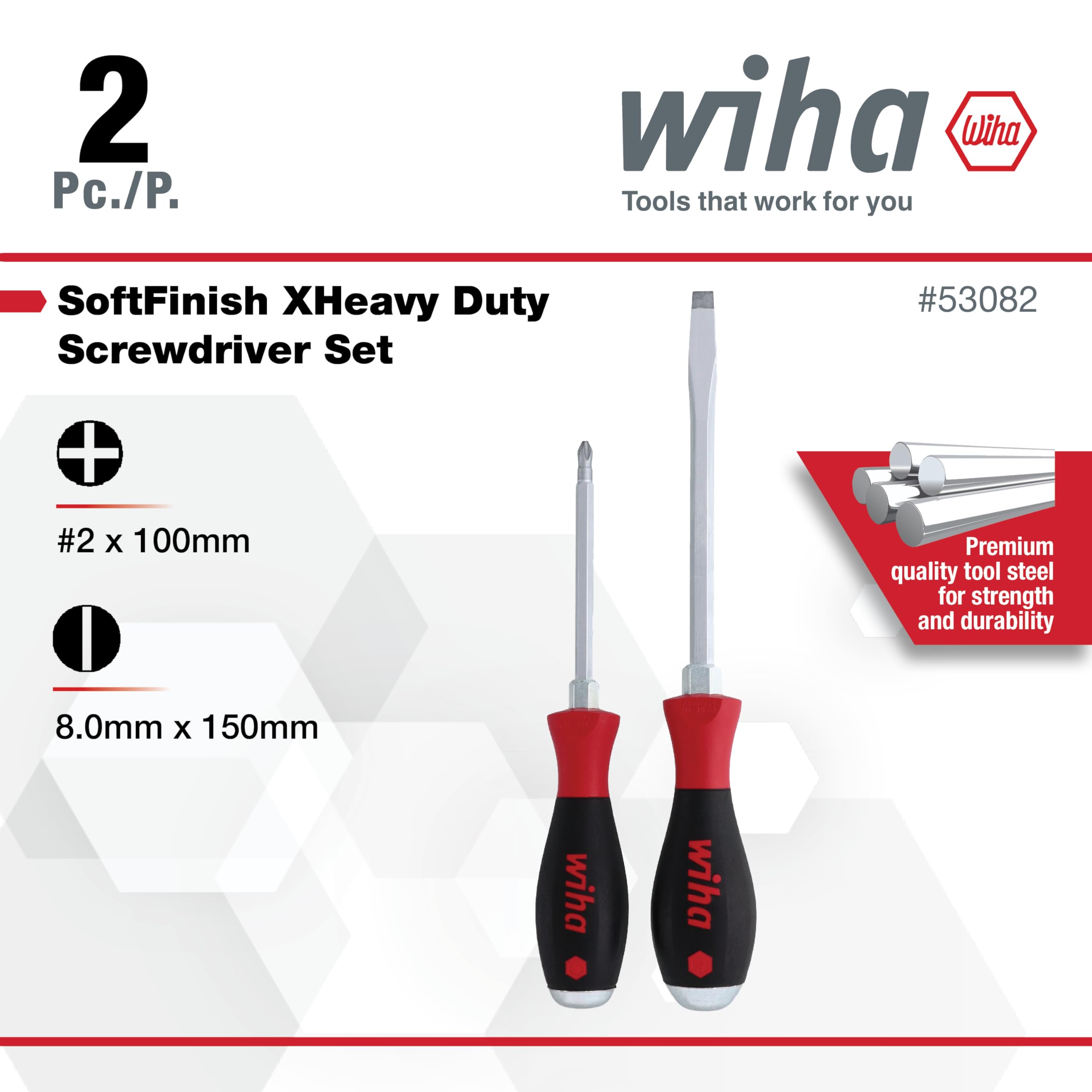 Wiha 53082 2 pcxHeavy Duty Slotted/Phillip Screwdriver Set