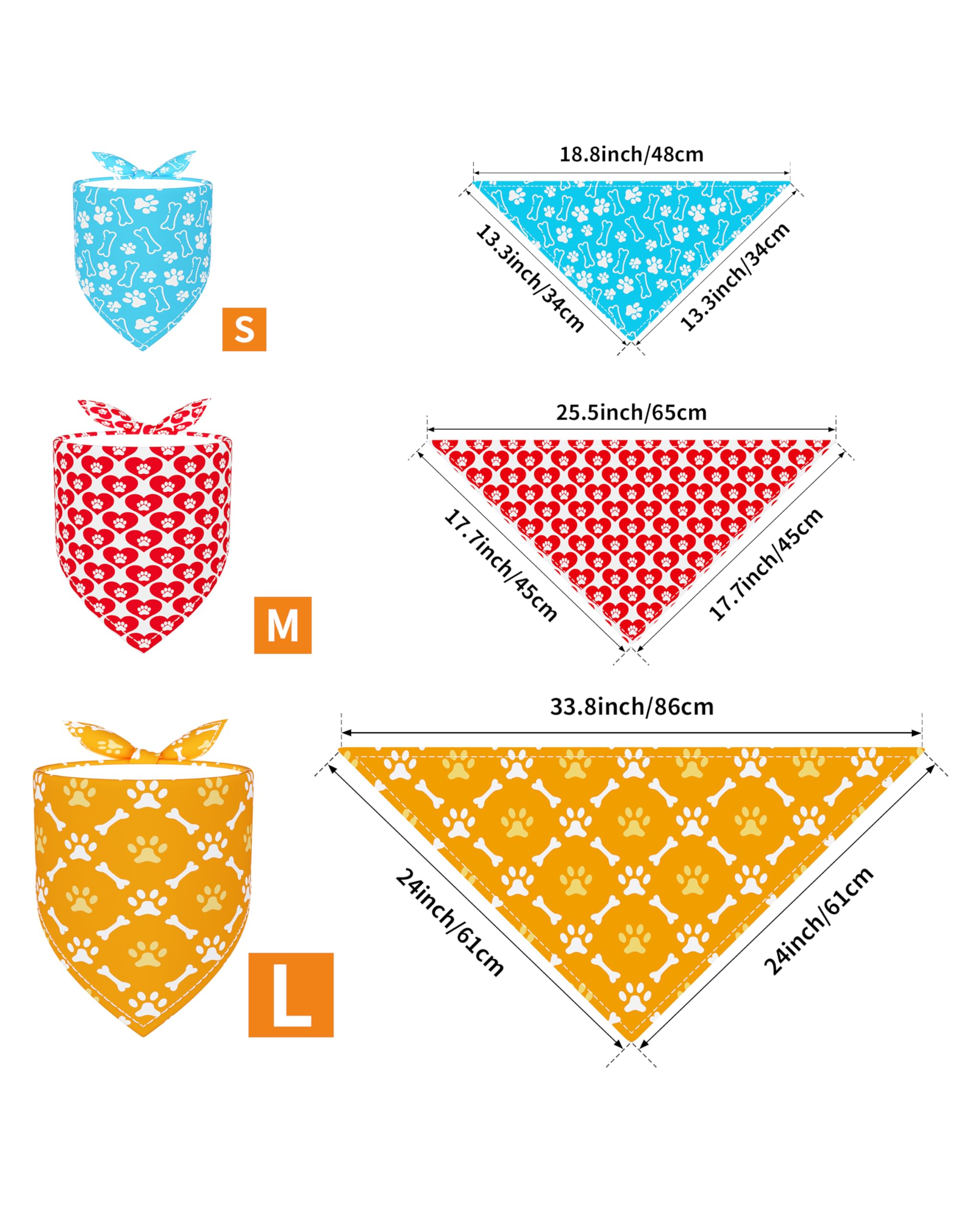 Size: The large dog bandana is about 33.8 x 24 x 24 inch, suitable for most small medium dogs and cats. They can be folded multiple times to fit the size of small pets, please carefully measure your pet's neck circumference before purchasing and leave room to tie knot