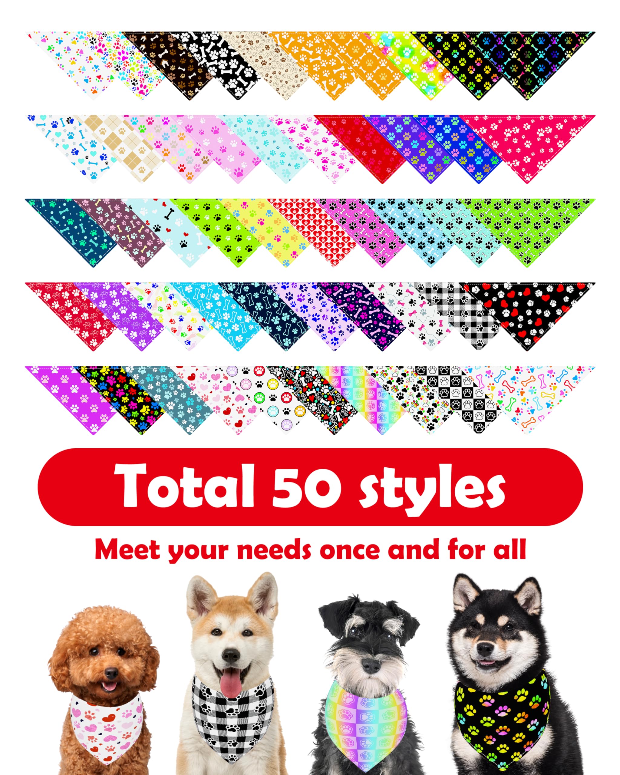 QTY Bulk: The package includes a total of 50 pieces of triangle dog bandanas in 50 different paw patterns. Attractive paw pattern will make your dog get many compliments, they are elegant and will add a lot of charm to your pets