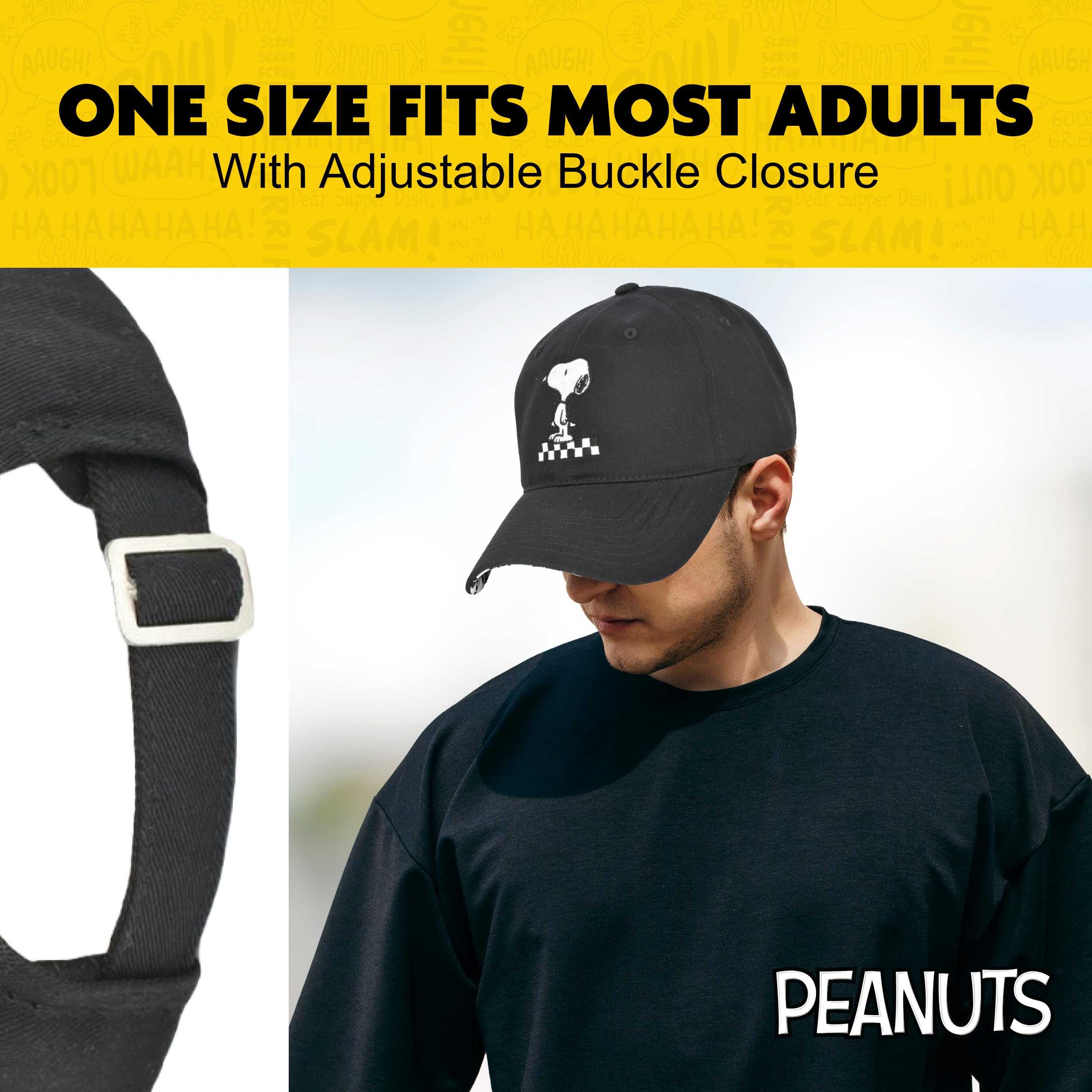 ONE SIZE FITS MOST — ADJUSTABLE FOR ALL: This Snoopy cap fits adults and kids alike with a metal slider closure that delivers a snug, comfortable fit every time — a great dad hat or women's hat for anyone who loves Peanuts.