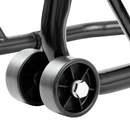 Easy Assembly & Use: Our motorcycle frame stand comes with a detailed assembly guide and a quick assembly process. Featuring four 3-inch PP casters and extended handles, you'll be able to lift your motorcycle effortlessly in just 2–3 seconds.