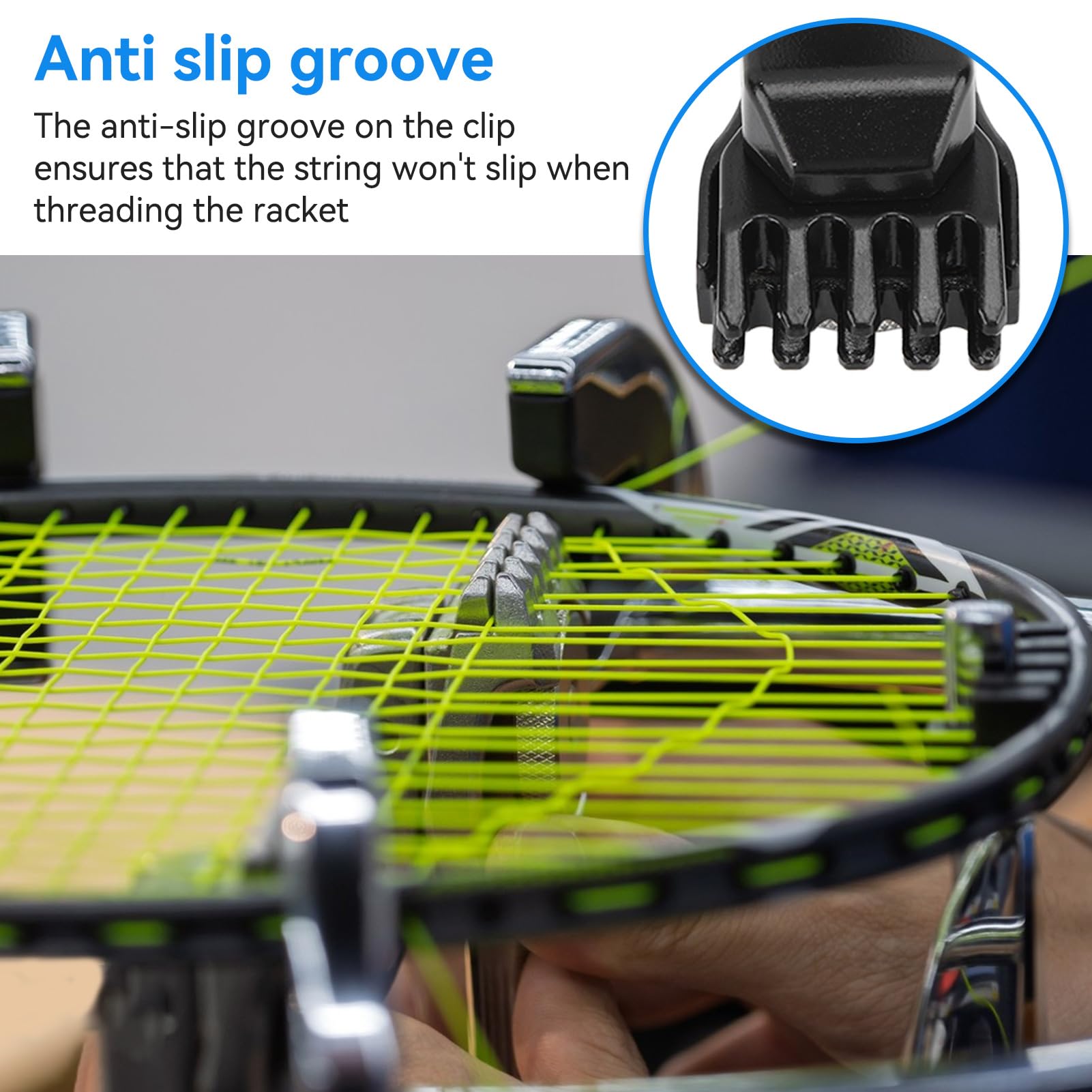 NON SLIP SLOT: Black tennis machine string clamp can securely hold strings in place. The badminton machine stringing pliers's non slip slots ensure that the strings stay put and don't slip while you string your racket