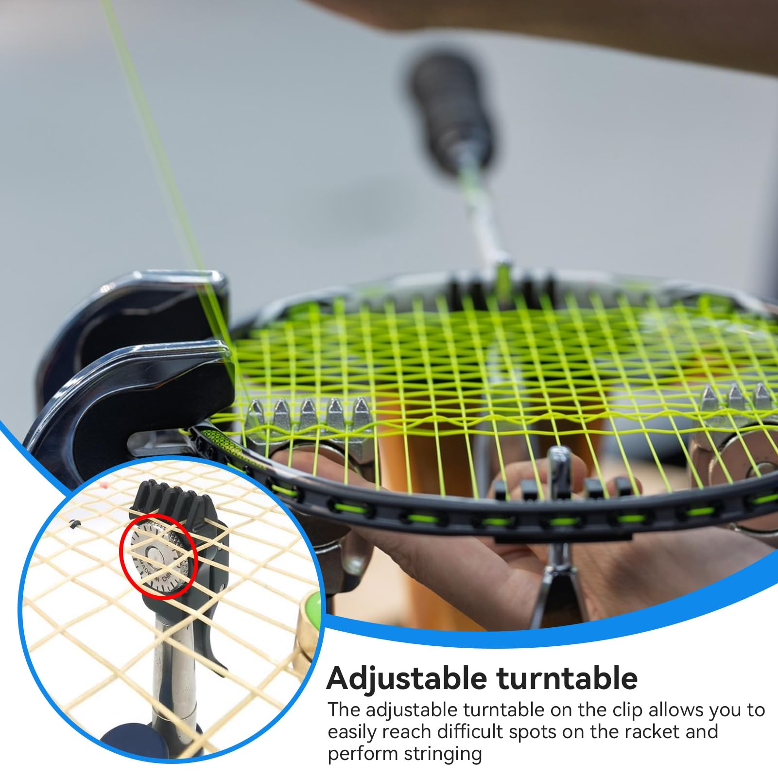 ADJUSTABLE TURNTABLE: This badminton racket starting stringing clamp allows you to access hard to reach areas. The recket starting clamp's adjustable turntable lets you easily access and string difficult spots on your racket