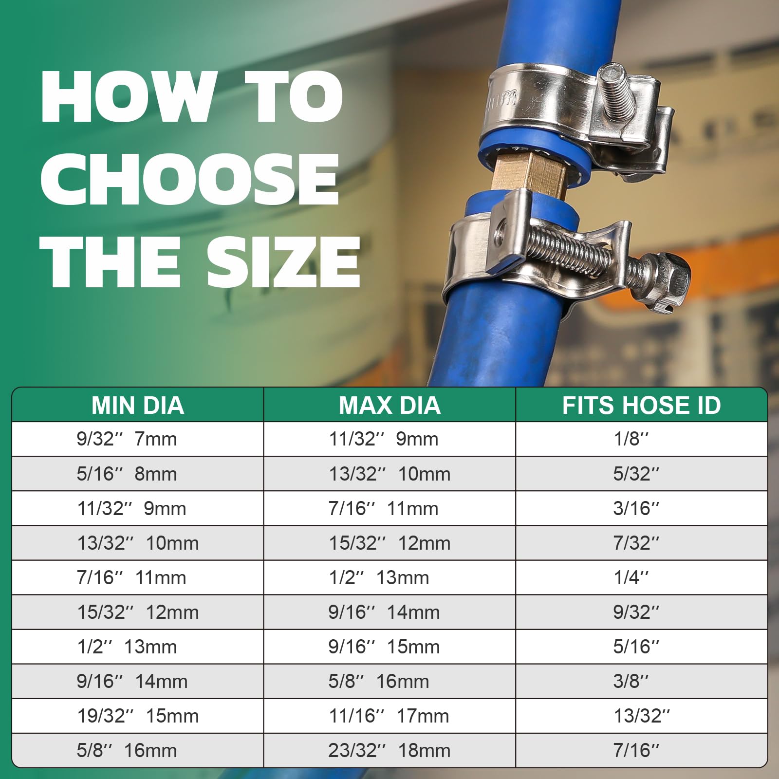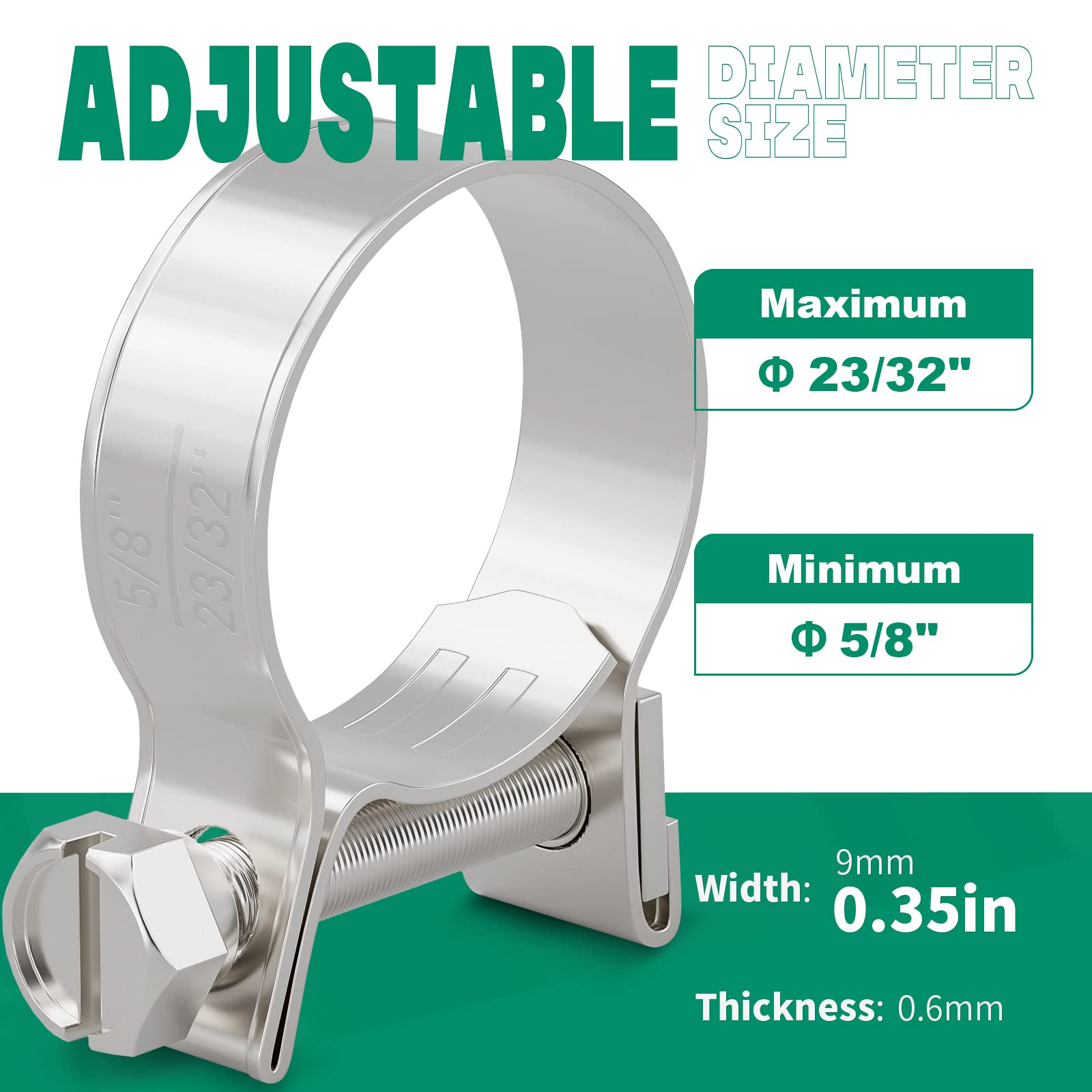 OURU Fuel Line Hose Clamp:Our 20pcs gas line clamps with adjustable screws,features flexible adjustability,freely adjustable size range is 5/8"-23/32" (16-18mm). The size standard has no deviation,which can meet your daily needs for products of different sizes