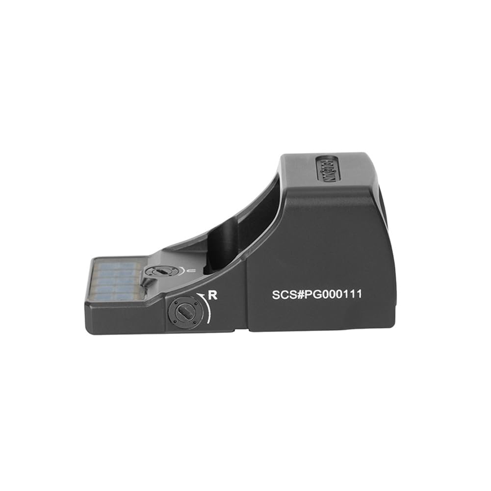 SPECIFICATION - Reticle: 2 MOA Dot & 32 MOA Circle; Light Wavelength: 540nm; Magnification: 1x; Parallax Free & Unlimited Eye Relief; Power Source: Solar & Battery; Battery Type: Internal Rechargeable; Battery Life (Hours): Unlimited; Brightness Setting: Auto; Housing Material: 7075 T6 Aluminum; Window Size: 0.58x0.77; Adjustment per Click: 1 MOA; W&E Travel Range: ±30 MOA