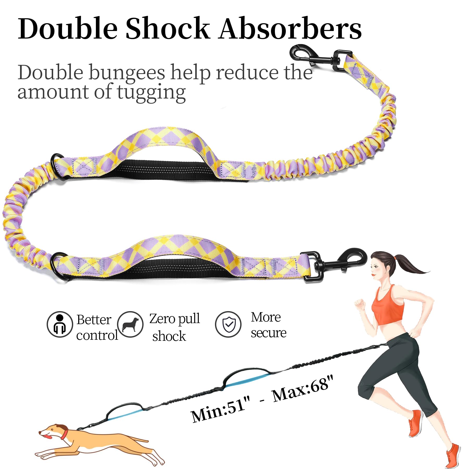 Double shock absorbers: Feature 2 shock-absorbers to help provide a bit of “give” in the leash. This can help reduce the amount of tugging both you and your dog will experience as you cruise down the road