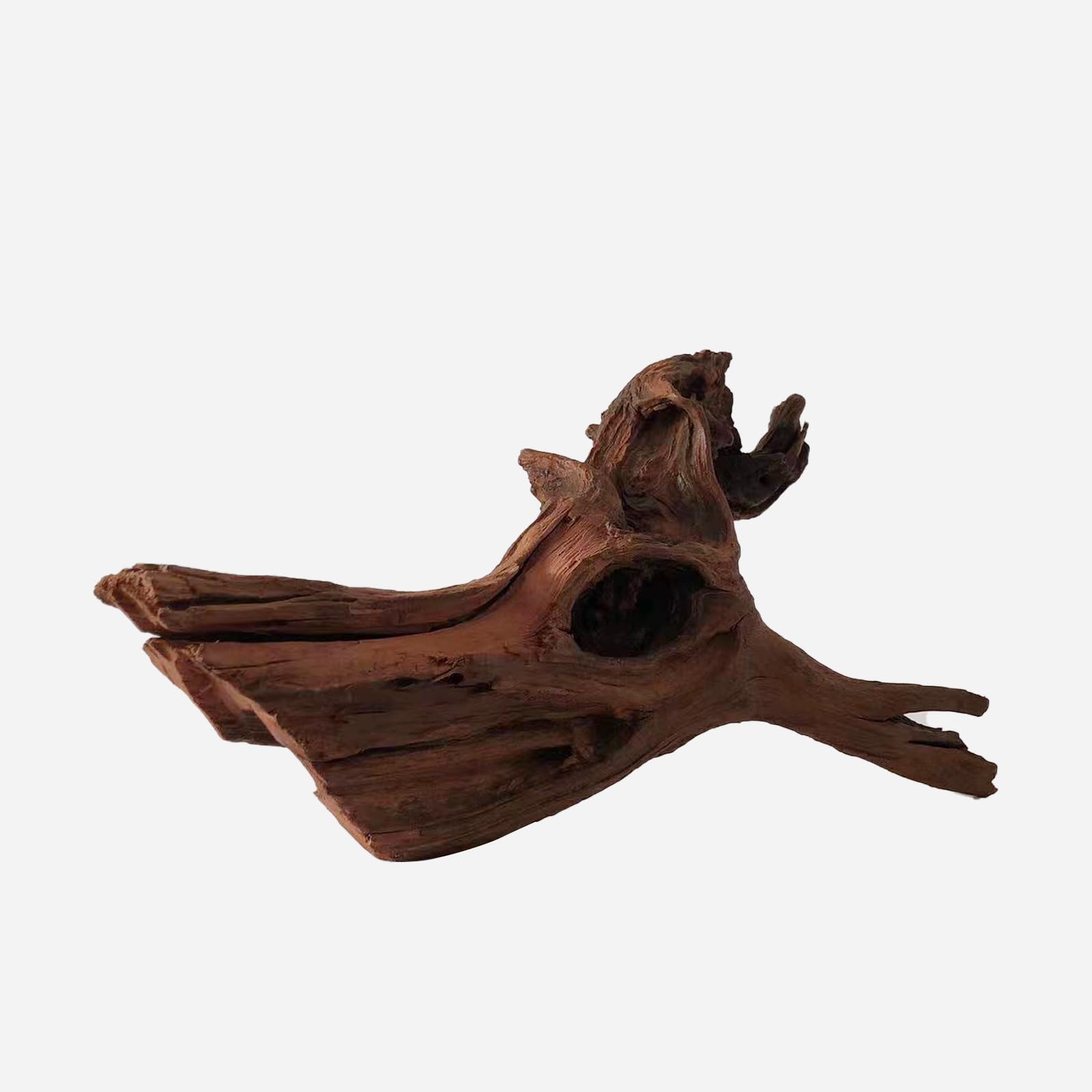 FIXED SHAPE - Purple teak wood L15.75×W9.84×H8.27 in, 3.53 lb. Shape as shown in the image (Manual measurement, please allow about 1 inch margin of error for different angles). Natural driftwood formed by nature has unique shapes and textures, making them one-of-a-kind. These driftwood pieces are carefully selected to ensure quality and aesthetics. Our driftwood has a relatively large weight and density, allowing it to sink directly into water and provide hiding place for your aquatic pets.