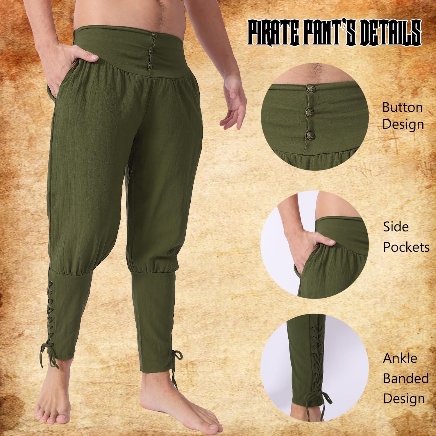 Perfect for Pirate cosplay party, Halloween theme party, daily wear,LARP (live action role playing), renaissance, peasant, pioneer, medieval, colonial, theatrical costume,etc.