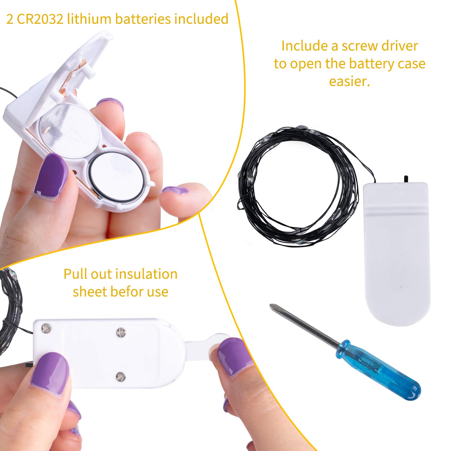 【 24 Pack Battery Operated LED Fairy Lights 】- Powered by 2 CR2032 batteries (included), the 7 feet micro fairy light with 20 upgraded energy-efficient LEDs is perfect for both everyday decorations as well as holiday decor. The thin copper wiring and small-sized LED bulbs will add a delicate and cozy touch to your personal space