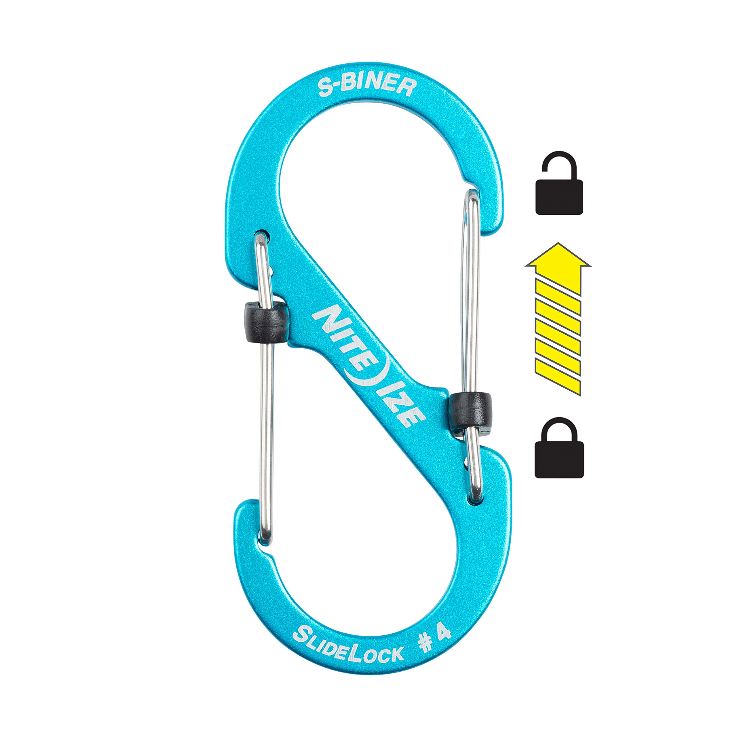 Organize, connect, carry, and keep your valuables extra secure with the colorful, aluminum s-biner slidelock dual carabineer. Made of high quality, lightweight aluminum, the s-biner slidelock features two simple, innovative plastic sliders that slide into place to keep the stainless steel gates securely closed. Each gate can be locked independently for convenient access. The s-biner gates will stay firmly locked until you choose to unlock them, allowing for simple and secure linking, attaching, and carrying. Our s-biner slidelocks are available in three sizes (#2, #3, and #4) for small-to-larger tasks.