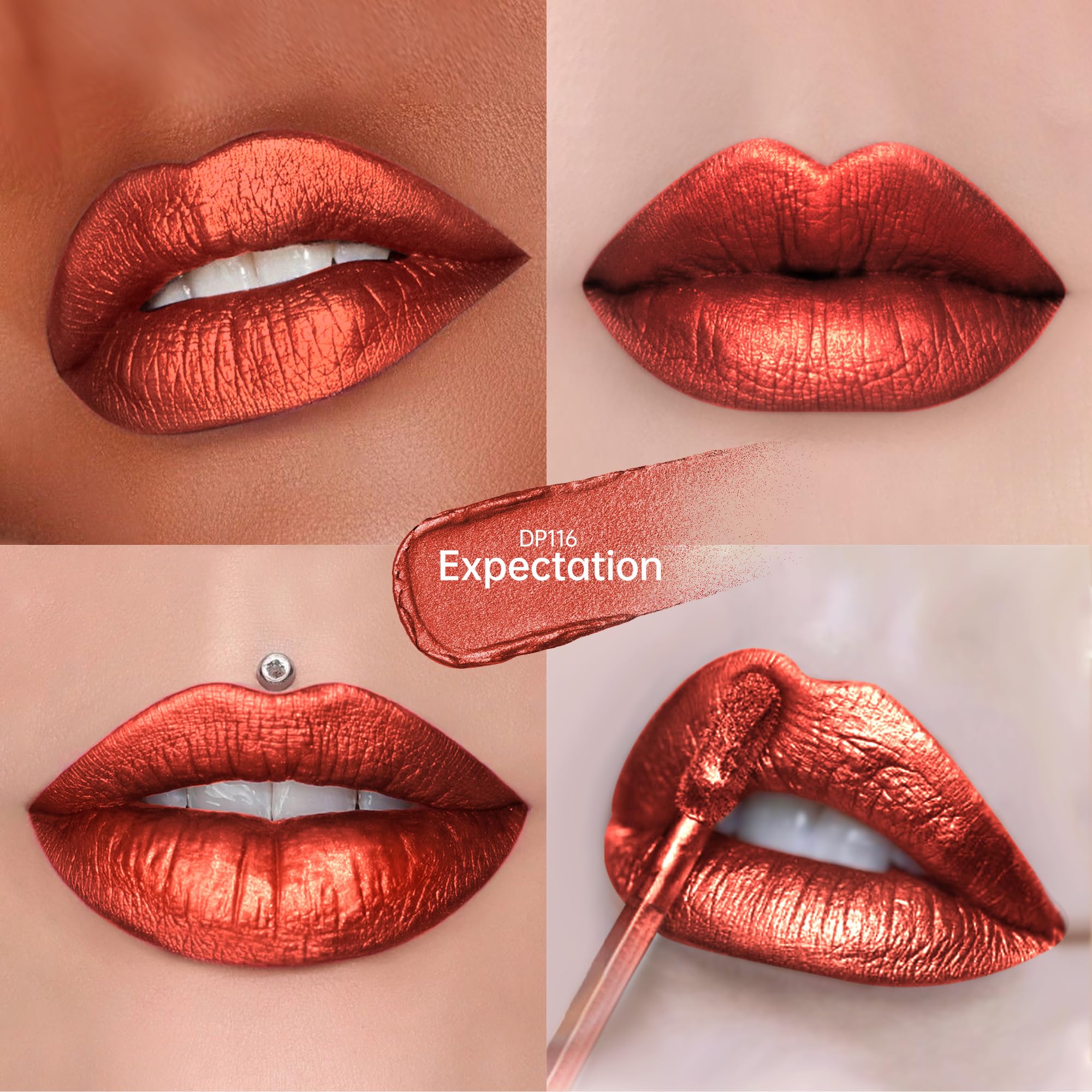 METAL LIQUID LIPSTICK WITH DUAL EFFECTS: Depuplum metallic shine lipstick delivers a lightweight and pigmented finish, creates two effects: a thin layer for shimmer payoff and a thick layer for bold metallic style