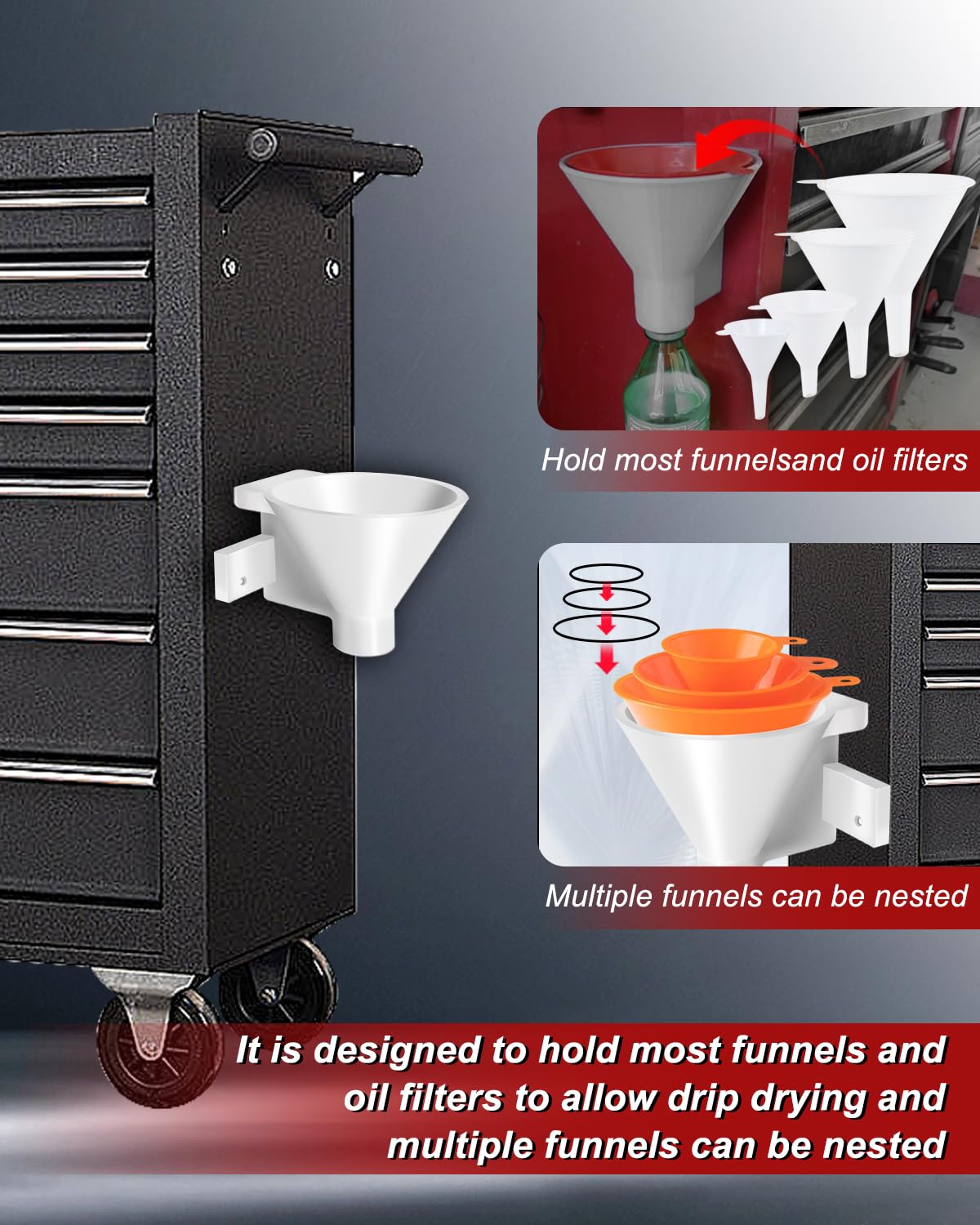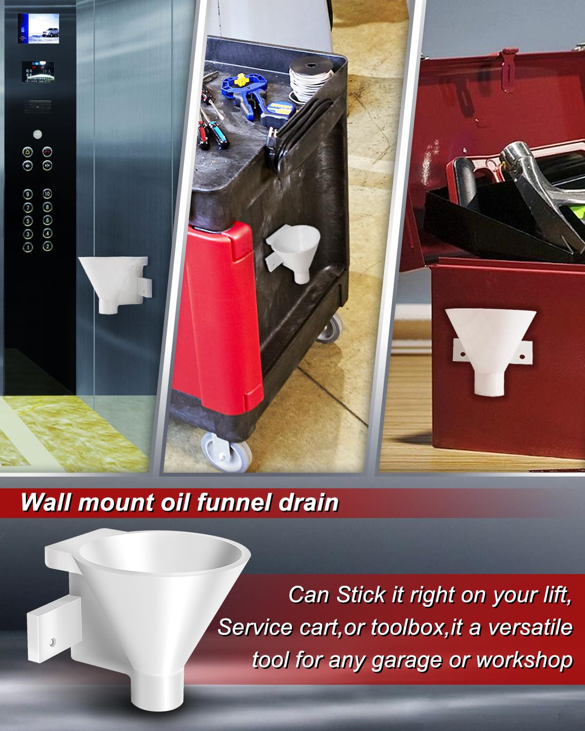 Widely Used: Wall mount oil funnel drain, Magnets secure it, Can Stick it right on your lift, Service cart, or toolbox, a versatile tool for any garage or workshop