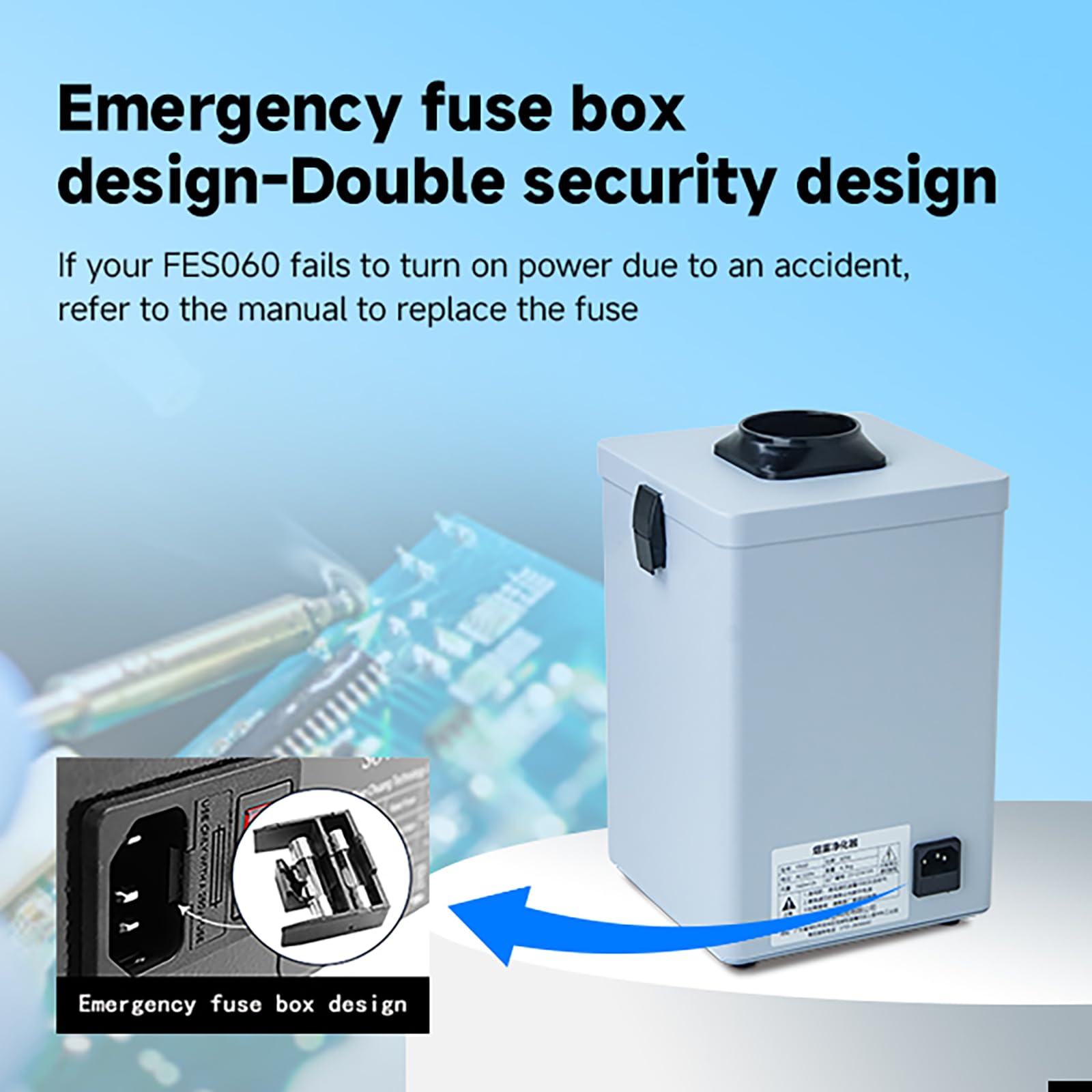 𝐃𝐨𝐮𝐛𝐥𝐞 𝐒𝐚𝐟𝐞𝐭𝐲 𝐃𝐞𝐬𝐢𝐠𝐧. There is a hidden emergency fuse box beside the power button, which is equipped with two 3A fuses. If the machine fails to operate after being powered on, please open the emergency fuse box and replace the fuses inside according to the product manual