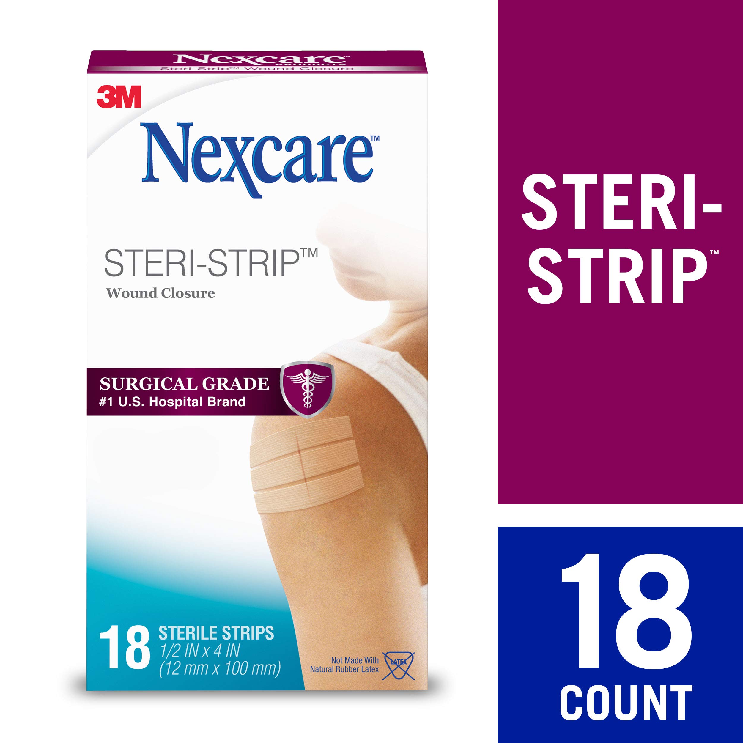 Nexcare Steri-Strip Wound Closures help keep small wounds closed while they heal. The low-profile adhesive strips offer wound support following the removal of sutures or staples as directed by a physician or health care provider, as well as helping secure small cuts. Use the first aid strips to help close minor wounds. Strong adhesive helps each strip hold fast for secure wound closure. The small adhesive strips are hypoallergenic and not made with natural rubber latex. Breathable construction allows your skin to breathe while keeping your wound closed. A pack contains 18 1/2-in. x 4-in. steri strip wound closures and makes a good addition to any first aid kit.
