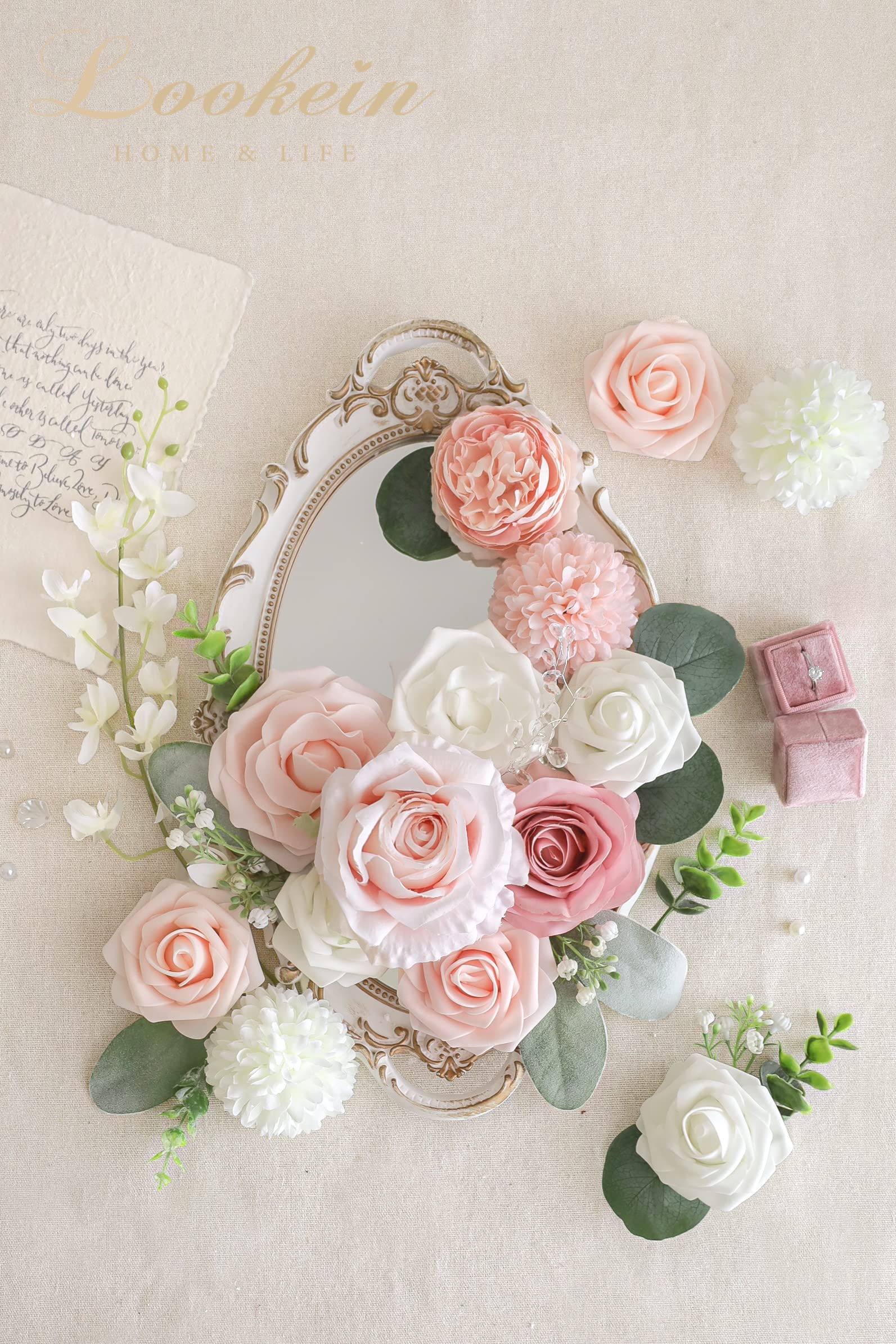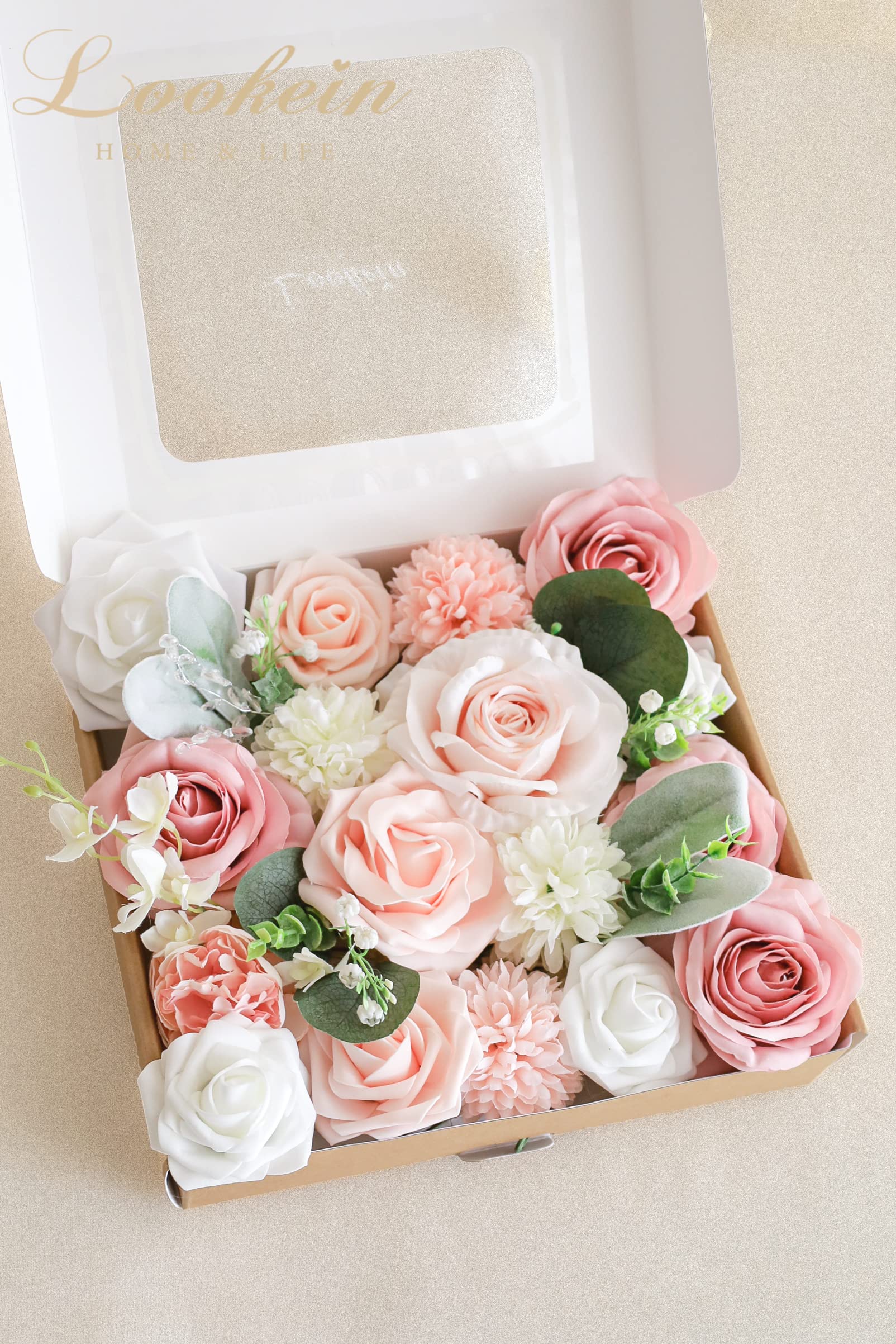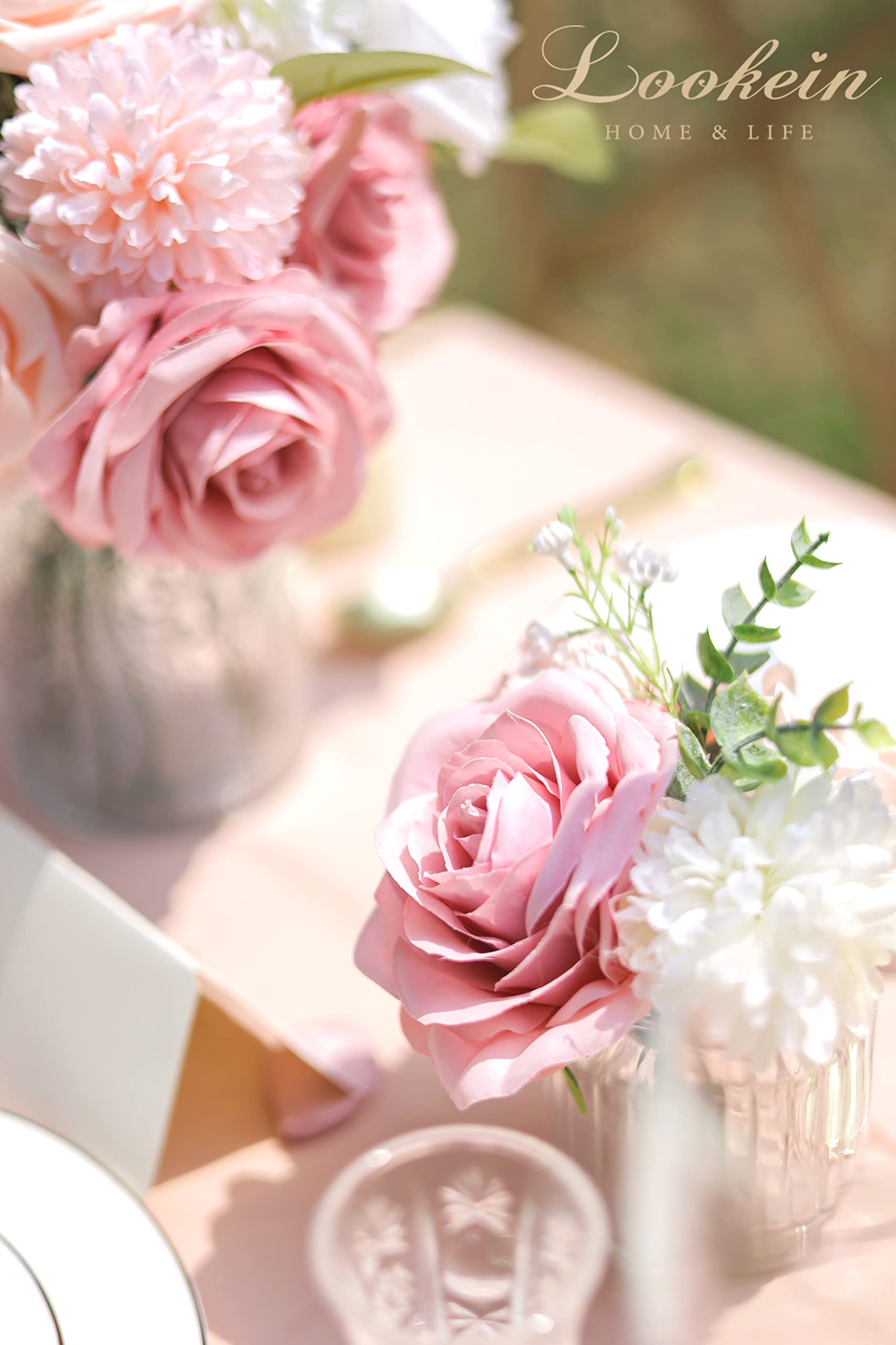 Specific Combo Pack: This artificial flower box set is combined with a variety of flowers and greeneries in a specific color scheme, which is perfect for your statement floral arrangement, making your event take on character easily.