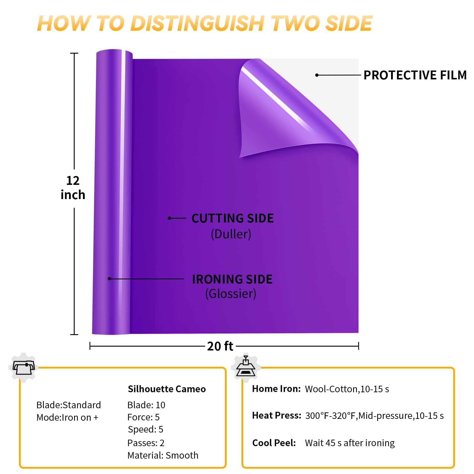【Money Saving】Each heat transfer vinyl roll measures 12" x 20ft and it can be tailored at will to reduce the unnecessary waste. Perfect for 12x12" and 12x24" cutting mats. Our iron on vinyl are compatible for all cutter machines.
