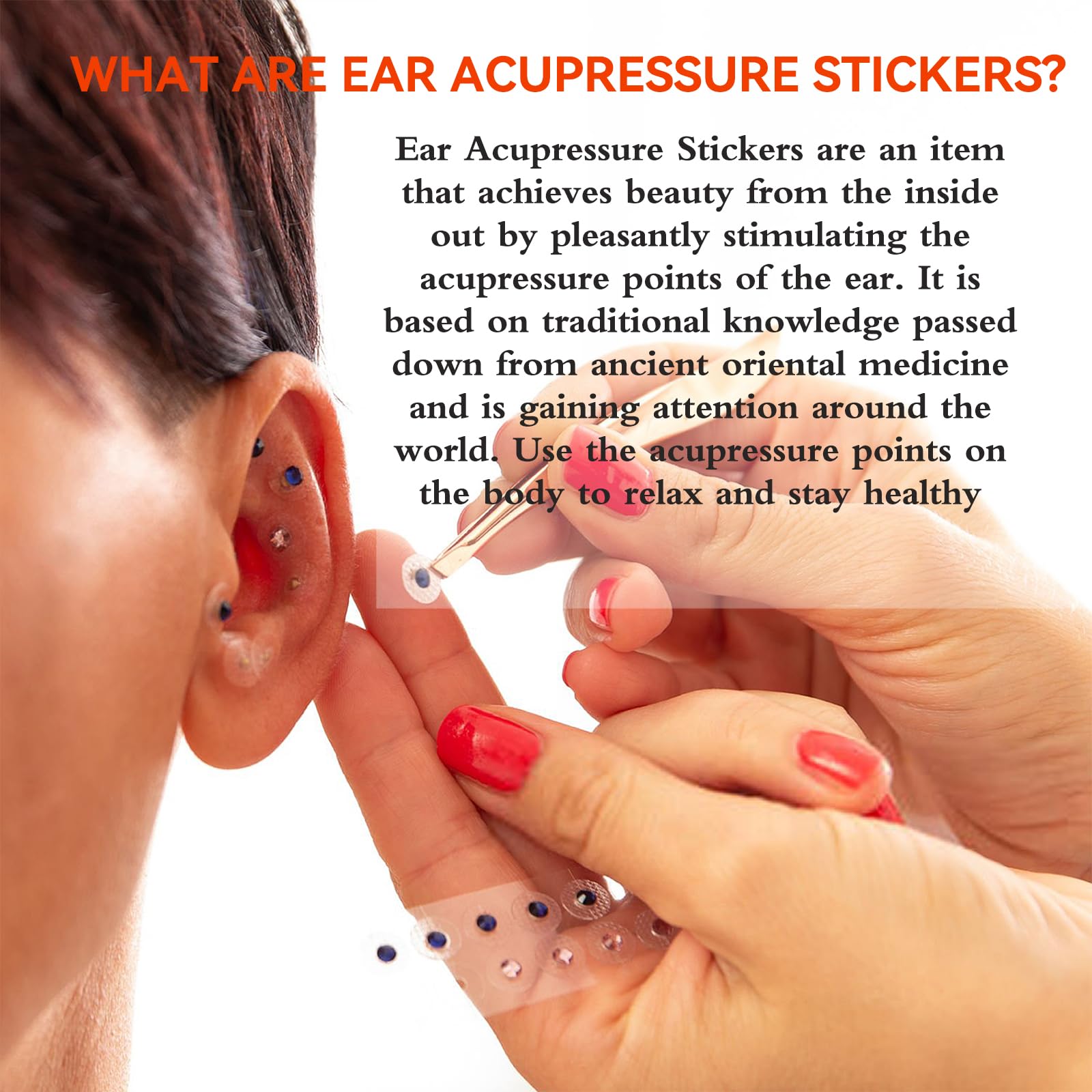 【User-Friendly and Durabl】- Applying our ear acupressure jewelry stickers is a breeze! Simply clean your ears or hands, apply the sticker, and enjoy long-lasting support for your wellness routine. Designed to stay securely in place, they offer an ideal solution for daily beauty care without frequent replacements