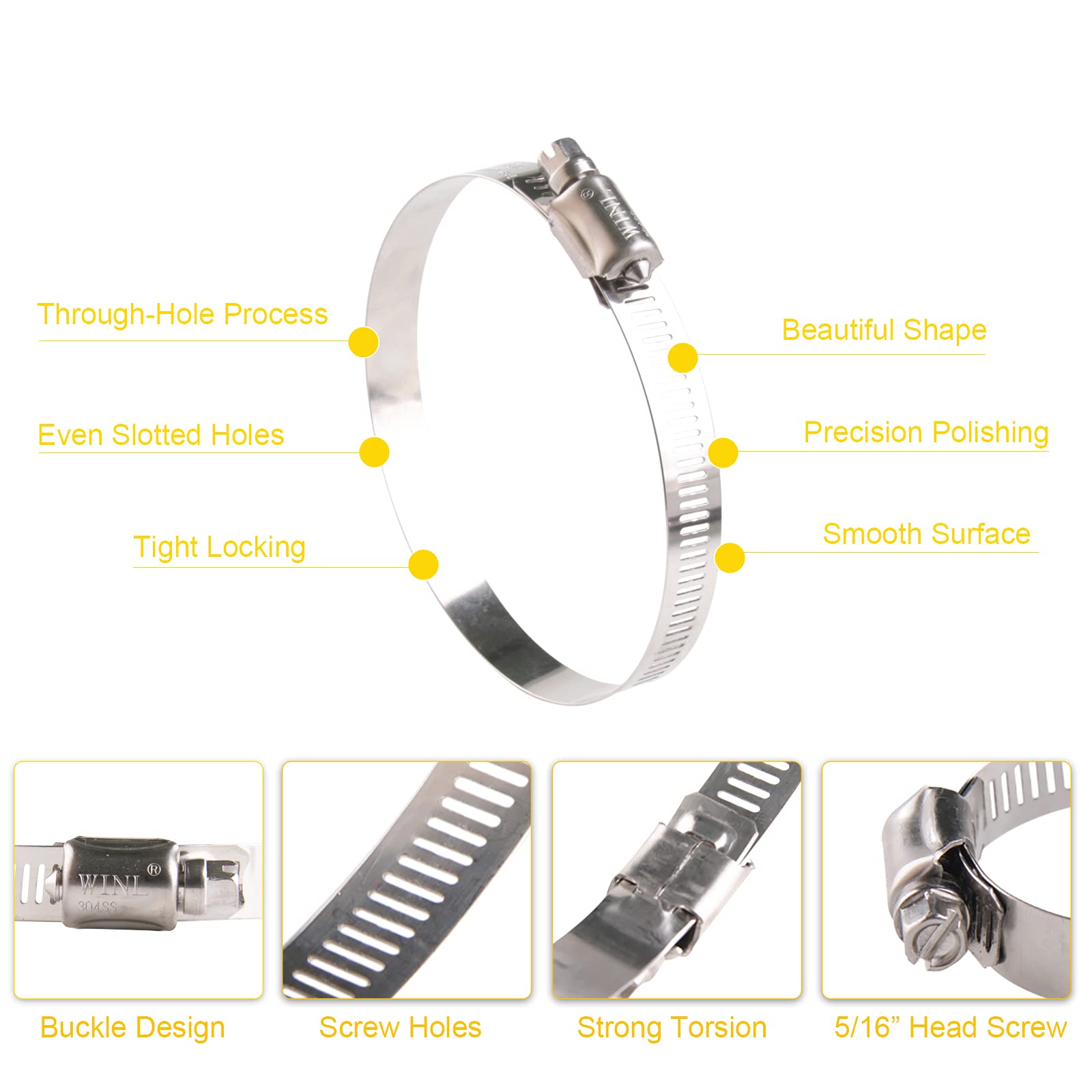 Effortless Installation: WINL 3 inch hose clamps are designed with through-hole process, even slotted holes, steel belt through hole, tight locking and strong torsion force. The stainless steel hose clamps have stronger tightening force and and easy to install. WINL worm gear hose clamps are beautiful shape, precision polishing with smooth surface without burrs.