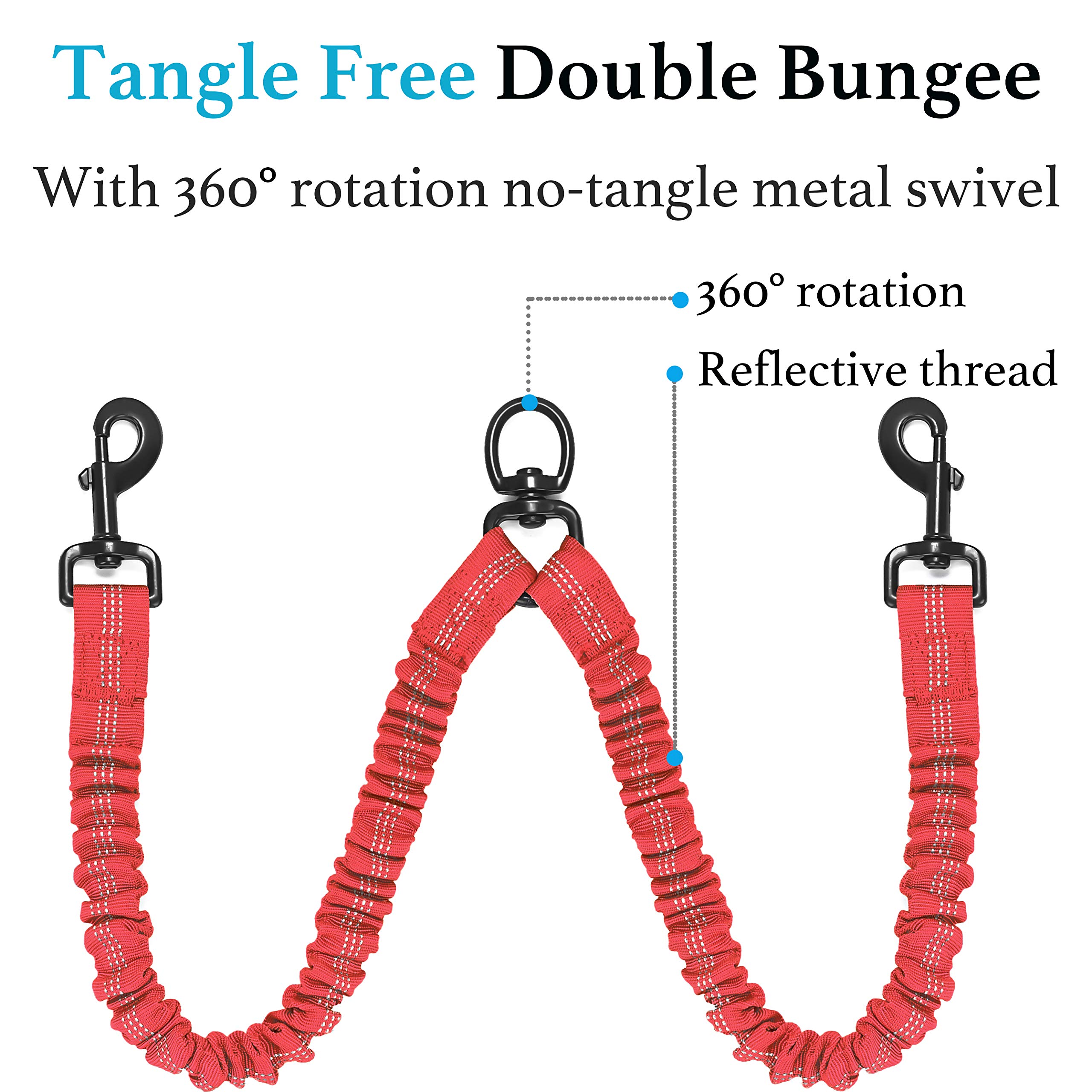 Tangle-Free Design: 360° swivel clasp design allows for auto adjusting when dogs criss cross, no limitation for your dogs while moving from side to side without messing the leash