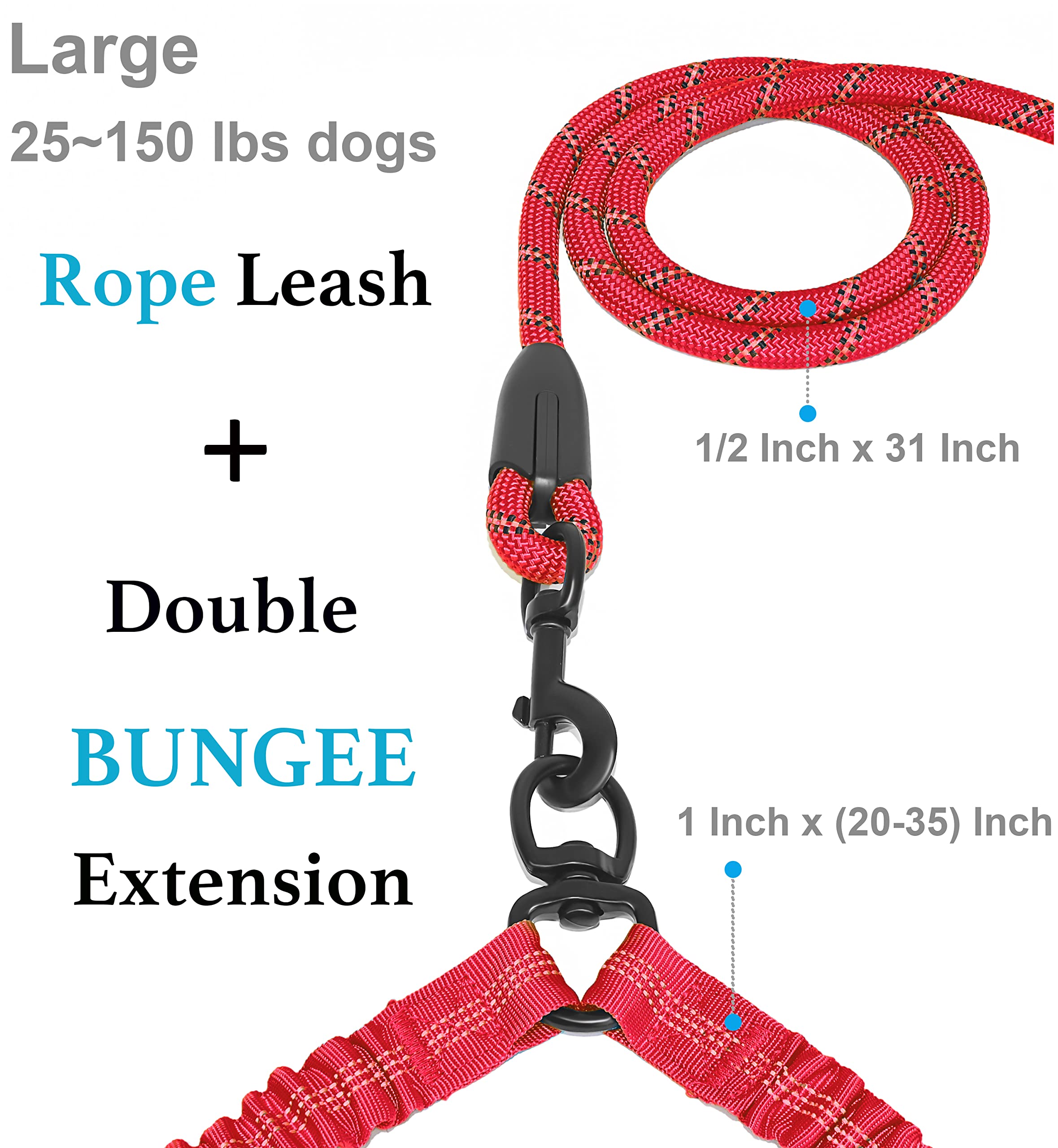 The iYoShop Double Dog Leash Advantage: 31 inch rope leash + double bungee extension (20 inches - 35 inches)