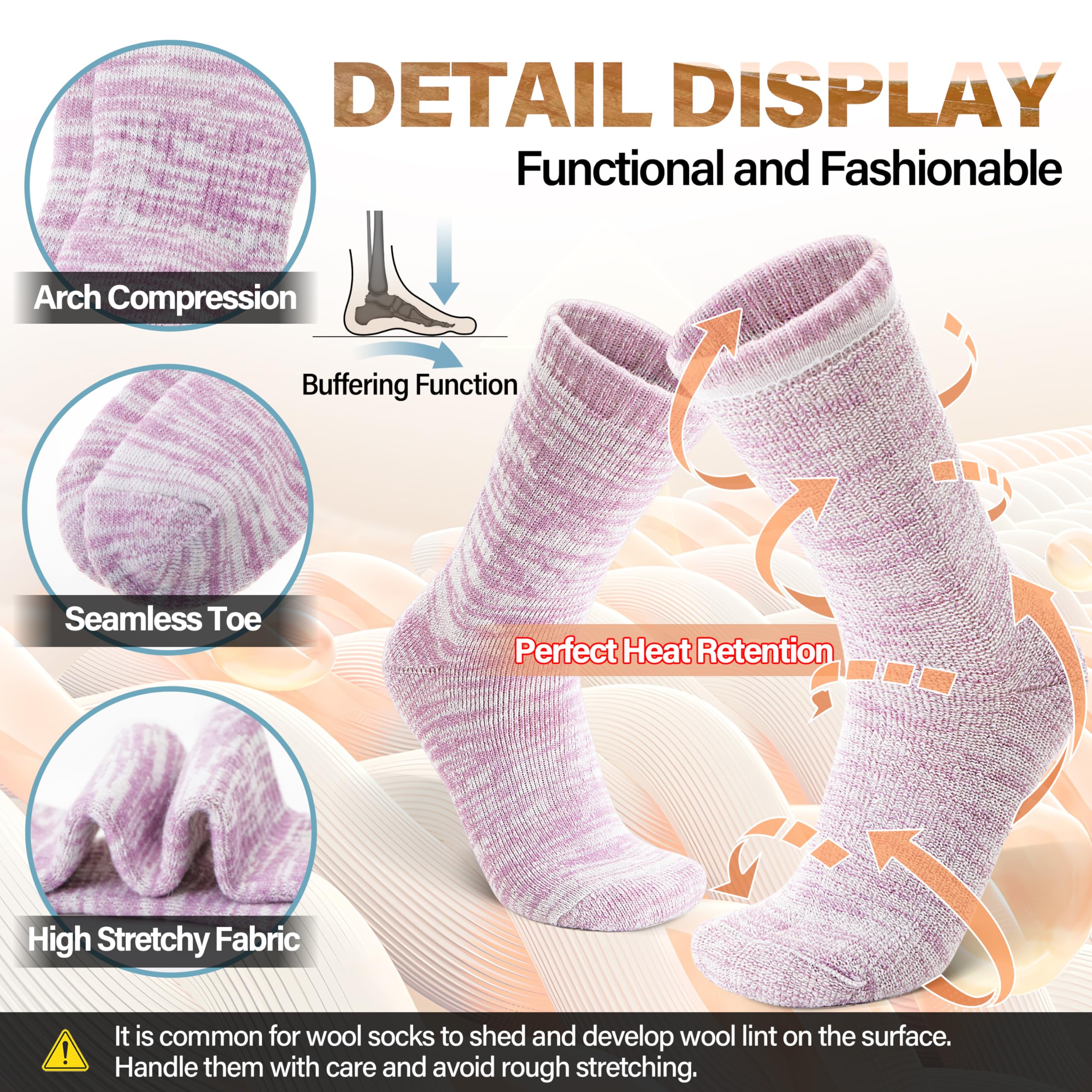Superior Warmth: Crafted with a blend of 70% merino wool,23% polyester, 5% spandex,and 2% nylon, these extra thick warm socks are your perfect companion for chilly days,ensuring toasty feet in any cold weather.