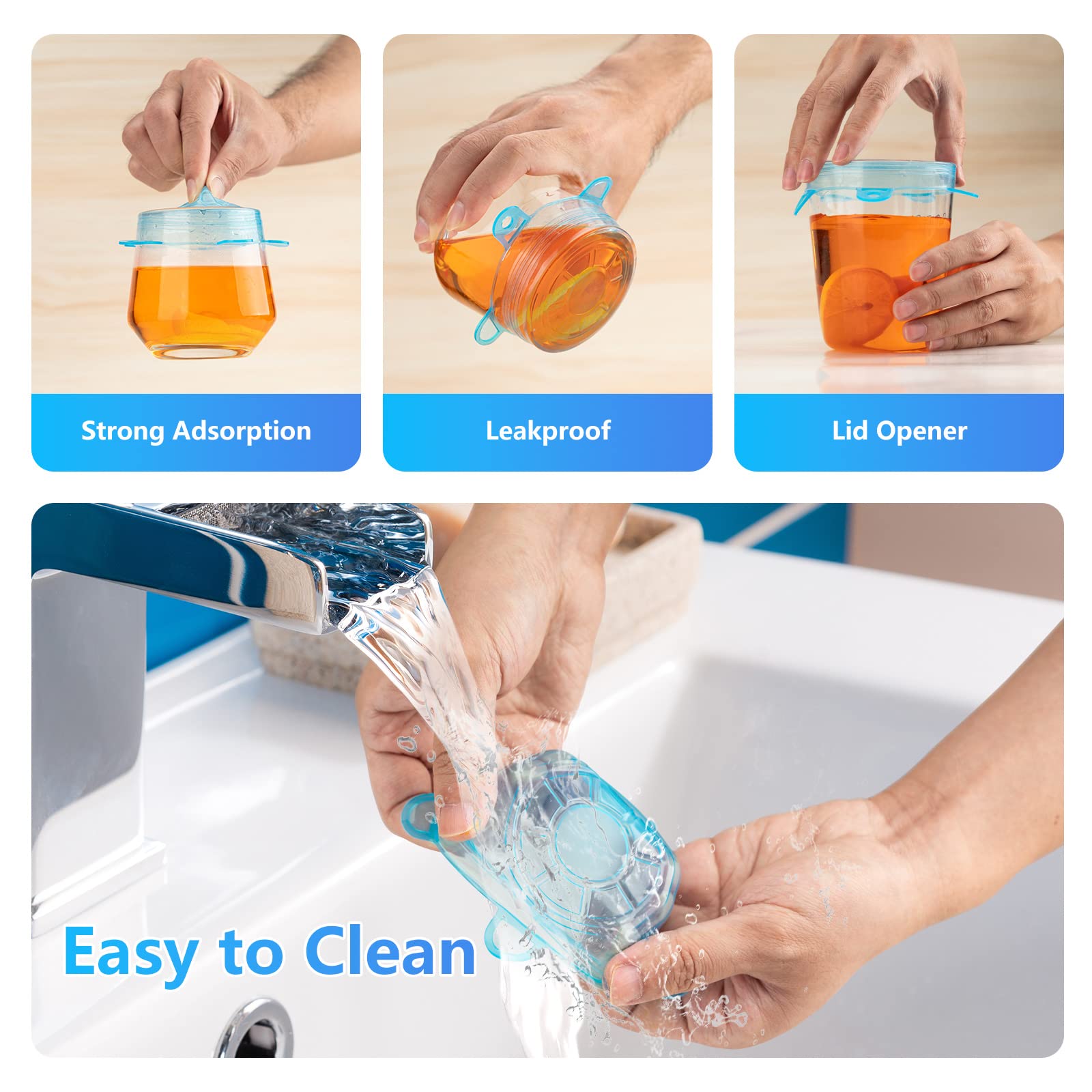These stretch silicone lids are easy to use. With Handy taps around the lids, they are easy to stretch and put on top of the cup or jars to seal them tightly. Compatible with cups, bowls, cans, jars, glasses, round or square openings.