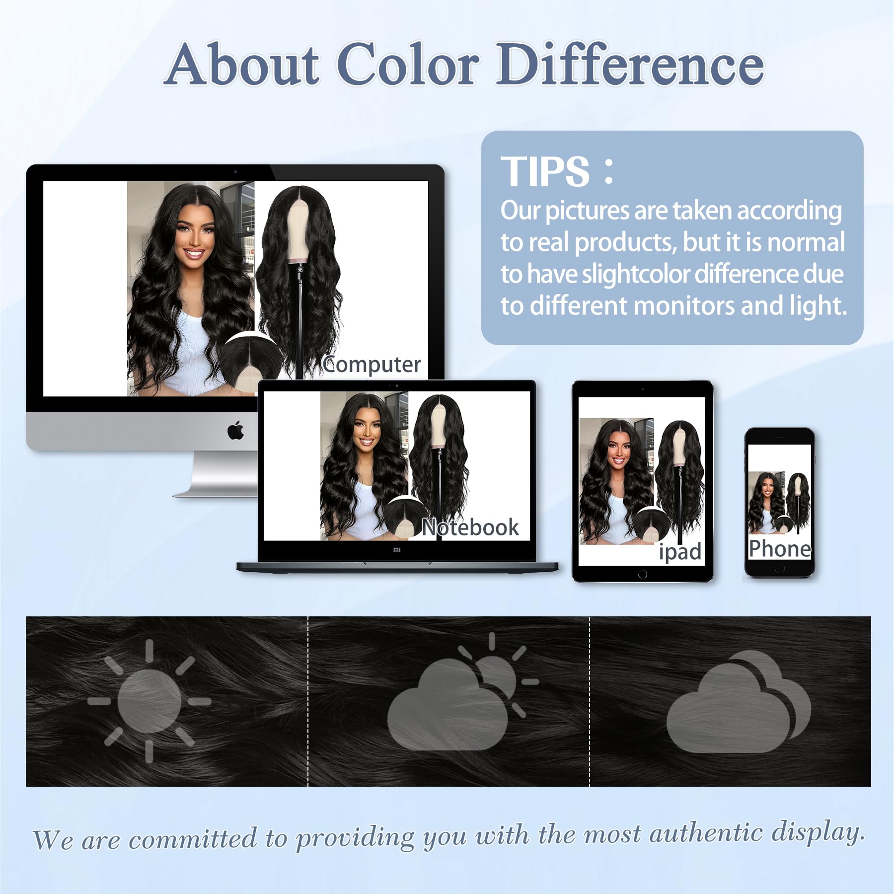 【Kind Tips】:All wigs will shed slightly especially when you wear them for the first time, which is normal. Colors may vary slightly depending on your personal computer or cellphone monitor settings. We do try our best to accurately represent colors on all of our products.