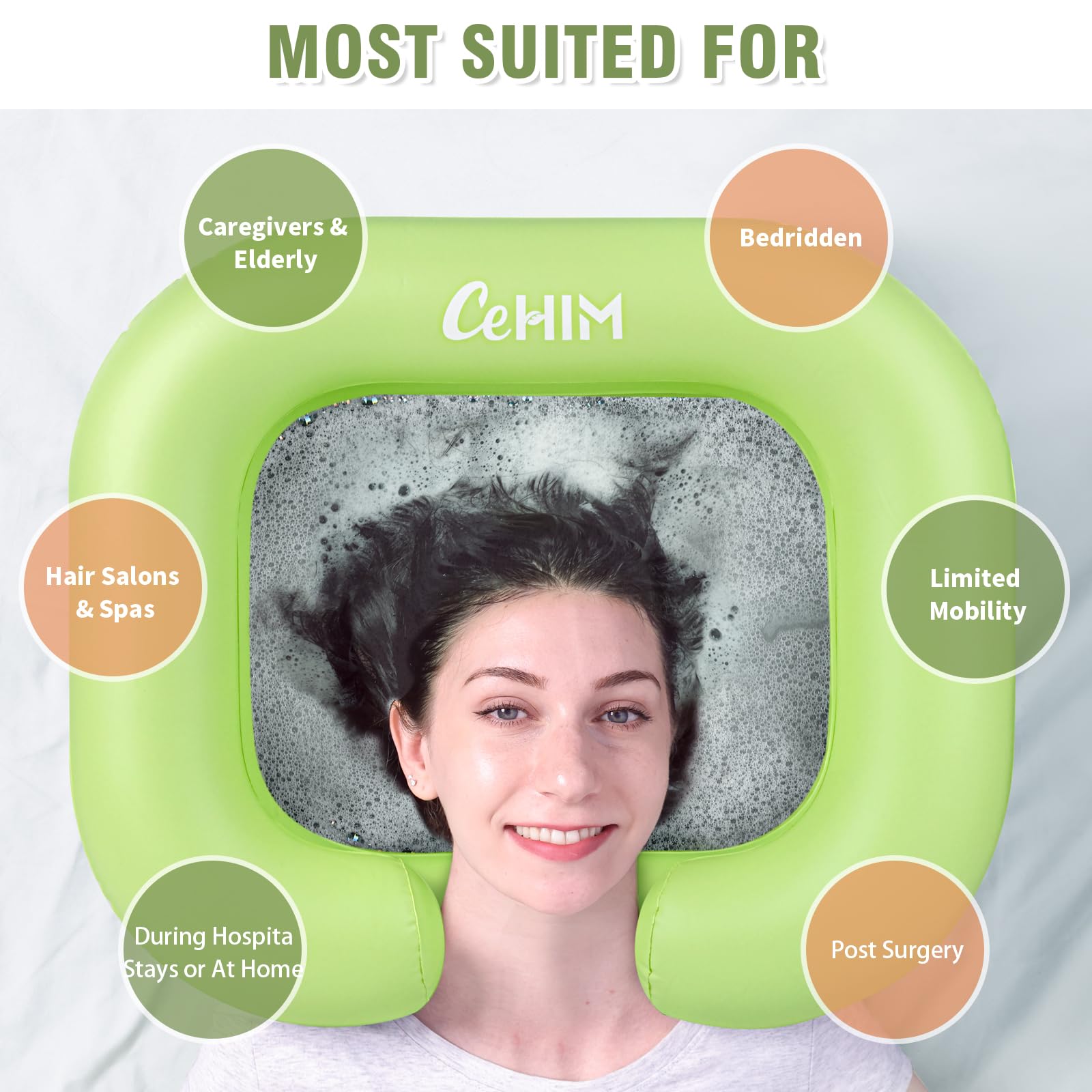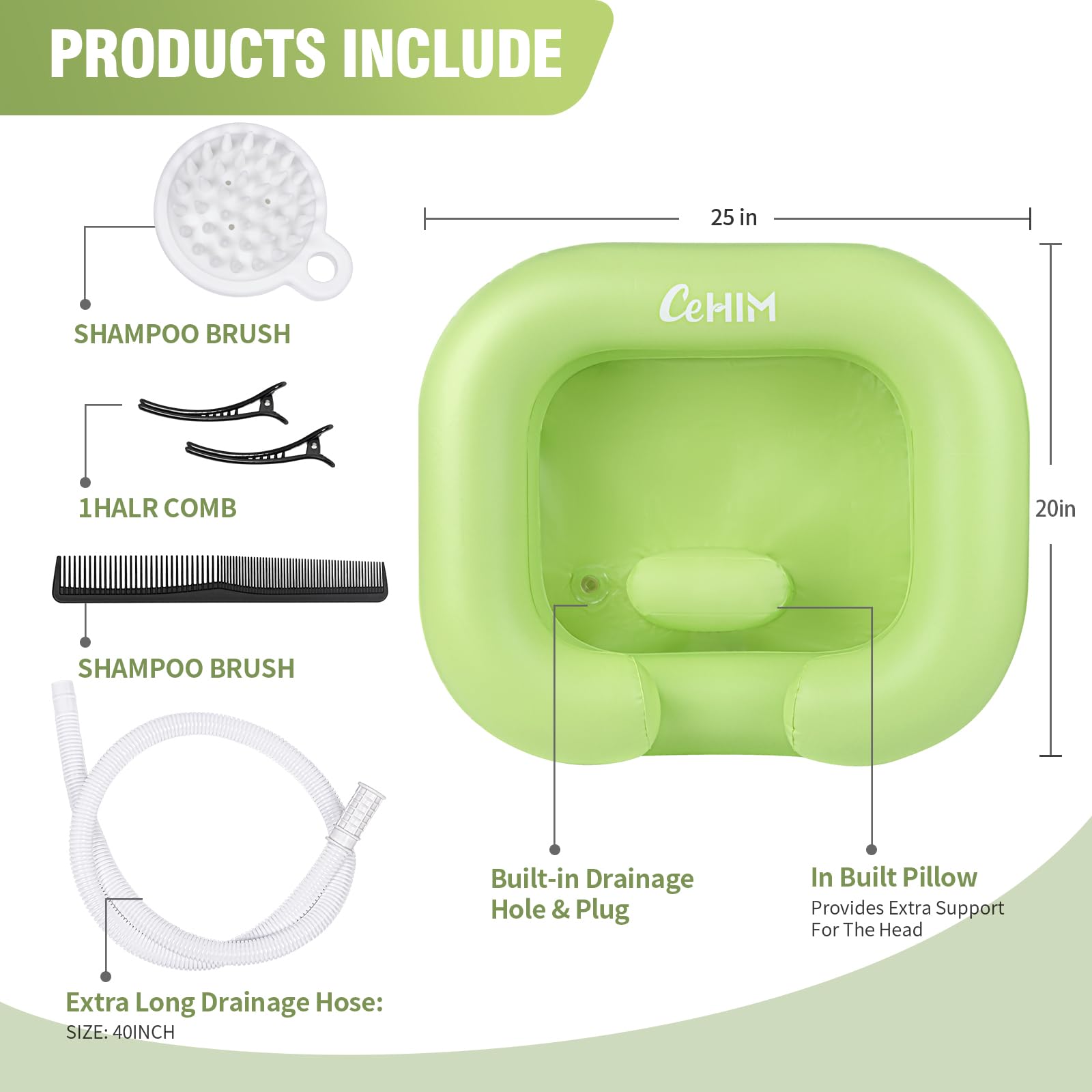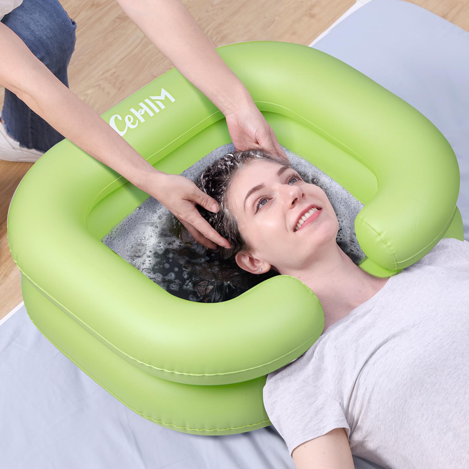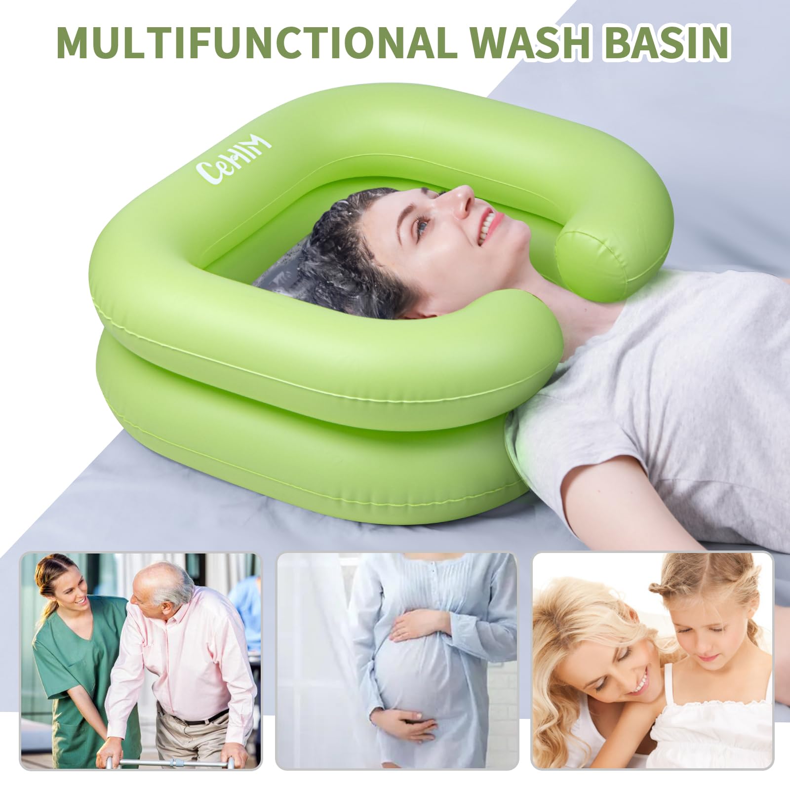【Inflatable Hair Washing Basin Solves the Difficulty of Washing Hair】Using the portable shampoo, washing hair on the bed is easy and convenient. It is very suitable for children, pregnant women, the elderly, etc. It not only simplifies the shampooing work of the inconvenient people or after surgery, but most importantly, it makes them feel very comfortable. The Green color is easy to keep clean and unlike white basins, won't show all the dirt/stains.