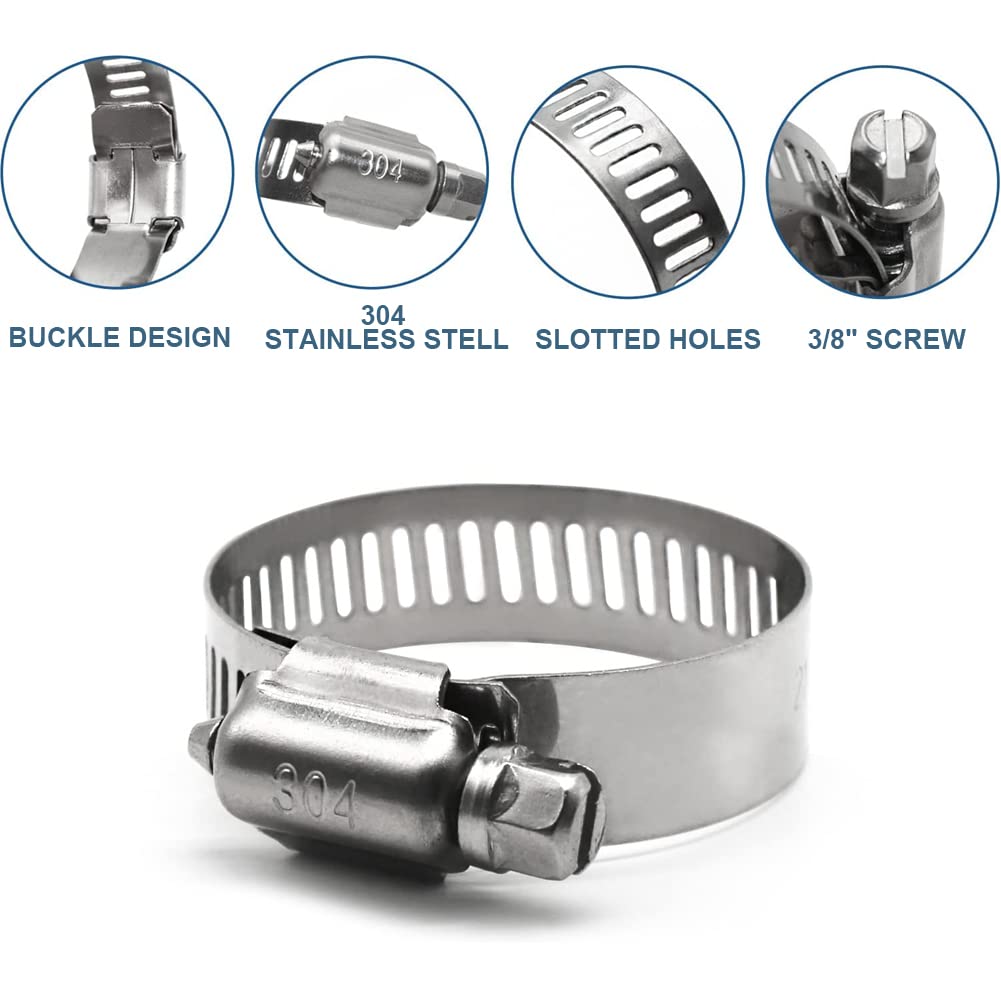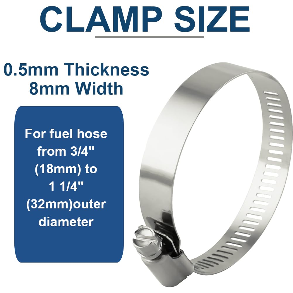 ✅DURABLE 304 STAINLESS STEEL CLAMPS–The 3/4 gas line hose clips are high quality and premium heavy-duty 304 stainless steel material that is more salt resistant, anti-rust, anti-corrosion, waterproof, oil proof than other 201 stainless steel. Solid and sturdy material ensures the adjustable hose clamps last a long time for use.
