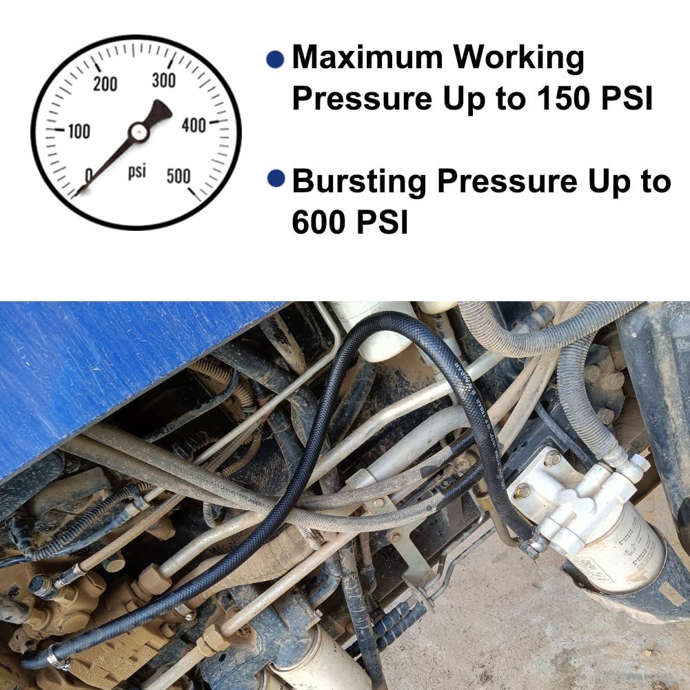 ✅ HIGH PSI RATING - The 3/4 transmission hose has a pressure rating of 150 PSI Working Pressure, and holds up to a max of 600 PSI. The 3/4 fuel injection hose thrives across the temperature range of 22°F to 248°F. The 3/4 transmission cooler hose has good retardancy and excellent corrosion resistance.