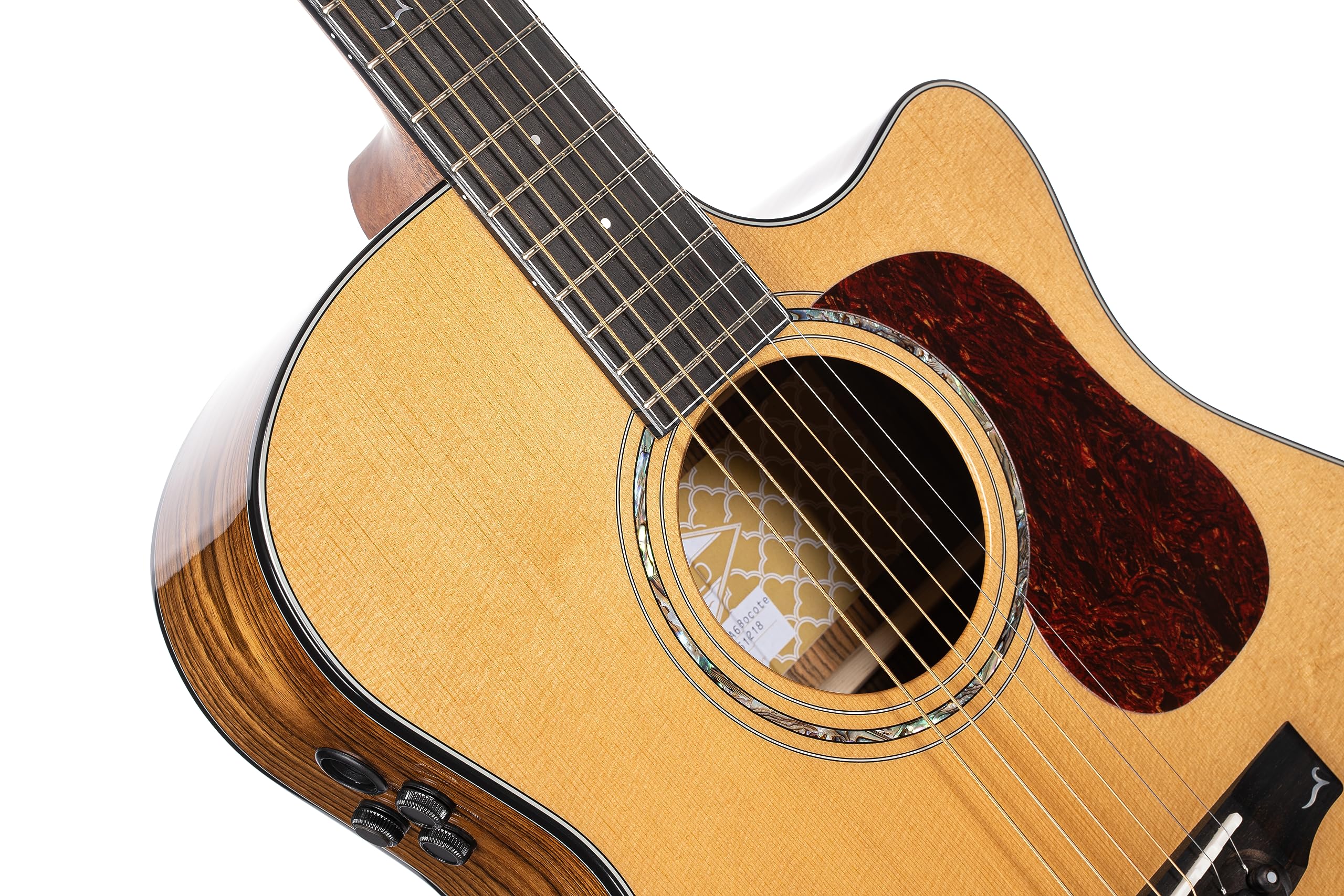 The multi-award winning Gold-A6 receives a special enhancement for its sides and back: a gorgeous exotic tonewood named Bocote. Bocote is best known for its majestic wood grain patterns in yellow, orange and dark brown colors with distinct black lines, but it is also known for its warm and deep sound much like rosewood. The rest of the Gold-A6 Bocote remains the same with outstanding features like the ATV (Aged-to-Vintage) torrefied top, sonically enhanced UV finish, and Flex Blend system, and with the introduction of the new Bocote option, our most popular Gold Series guitar is now more enticing than ever.