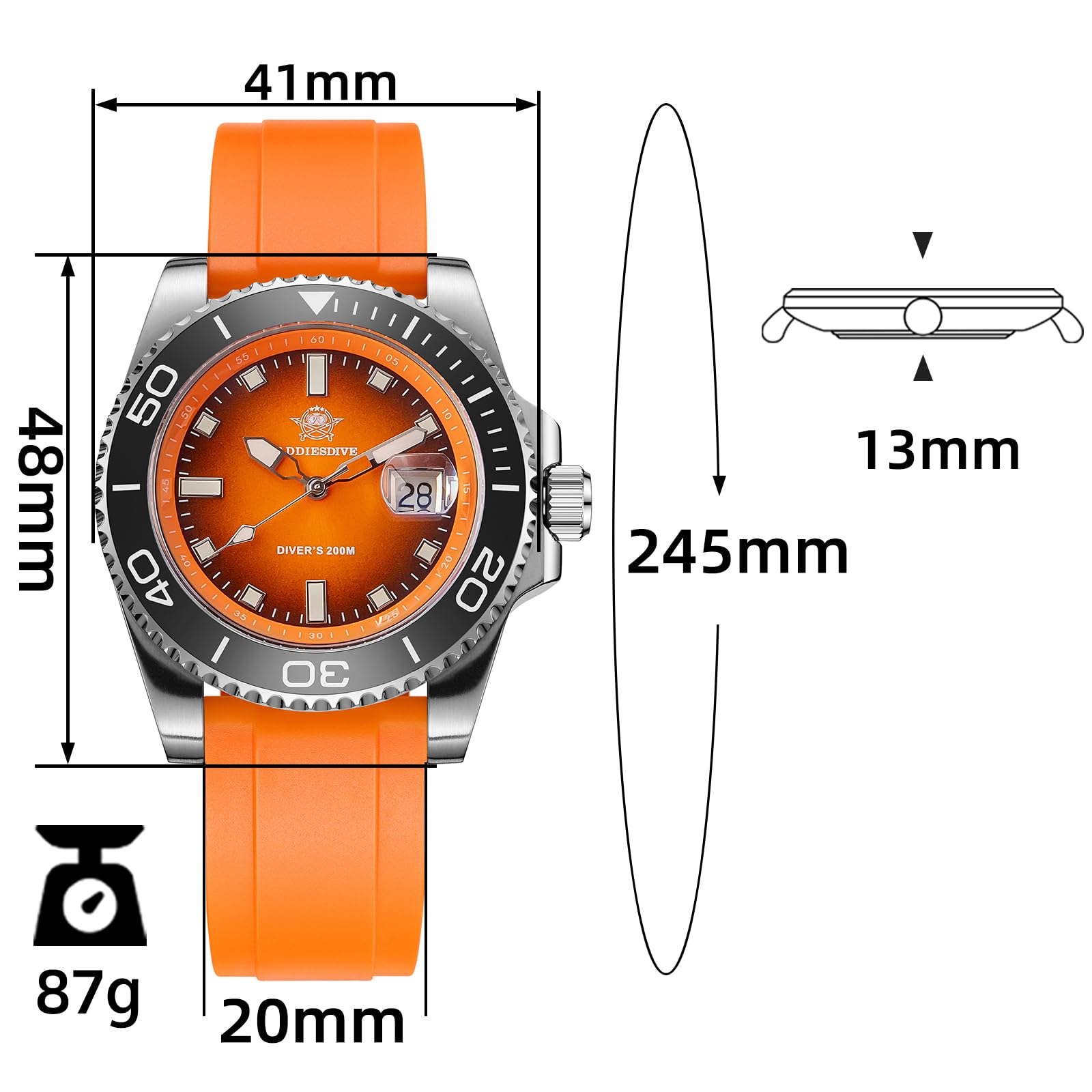 Size:Case diameter:41 mm;lug to lug length:48 mm;Case thickness: 13 mm;Lug width:20 mm
