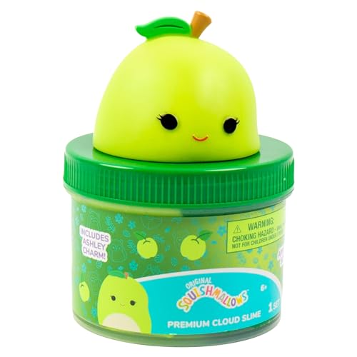 The apple of your eye got even cuter — introducing Original Squishmallows Ashley the Apple Premium Scented Slime! This resealable jar of fun contains 8 oz. of smooth green apple-scented slime, holographic glitter, and even a rubber charm of your favorite green friend, Ashley the apple! Pre-made slime means you can skip the messy measuring and get right to the sensory fun — just open and play! See how far the scented slime can stretch — it features two different shades of green! Mix in the sparkles for a magical effect, then add Ashley the Apple for a real sensory adventure! Combining slime as soft as your favorite Squishmallows with a smooth, chunky charm creates the sweetest tactile experience both kids and adults will love. Poke it, twist it, squeeze it, swirl it, then return the slime to its container for more to squish later! Perfect for a Squishmallow Halloween party favor, stocking stuffer or Christmas gifts for kids, or anyone who loves an easy slime making kit. Recommended for any Squishmallows fan ages 6 and up.