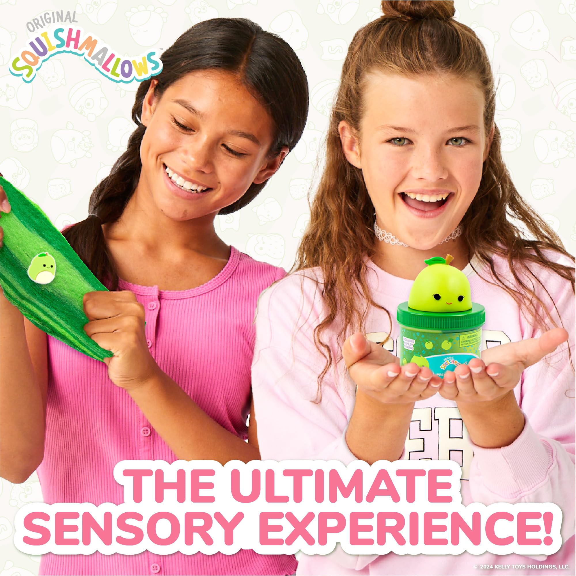 REUSABLE ASHLEY THE APPLE JAR: This 8 oz. Squishmallows slime comes in a resealable and reusable container with Ashley the Apple smiling on top — ensuring long-lasting sensory play, easy storage, and on-the-go fun!