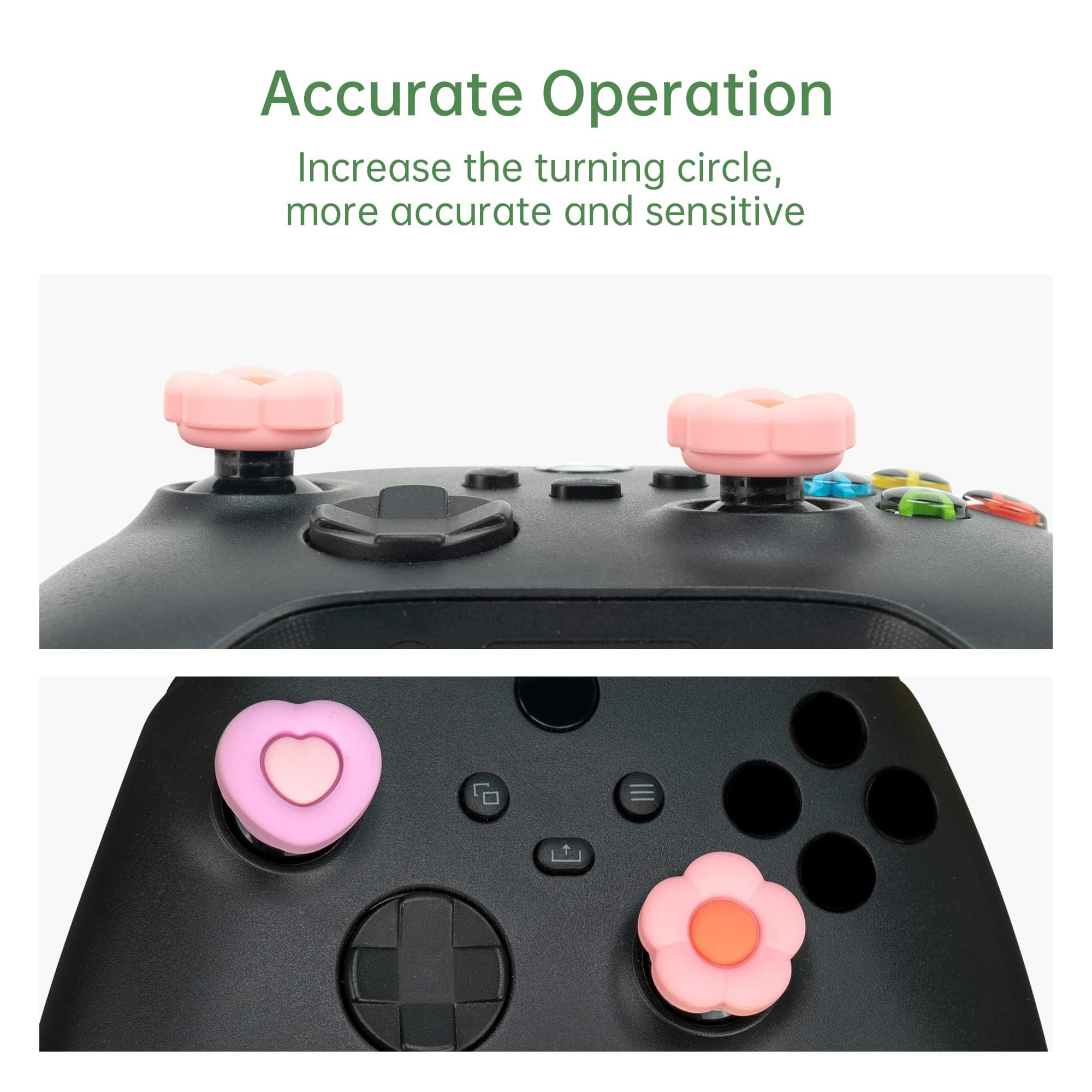 【Attractive & Eye-Catching Design】Cute heart and flower thumb grip caps, add flavour and vitality into your controller, reject boring black or white color and make your device more eye-catching.