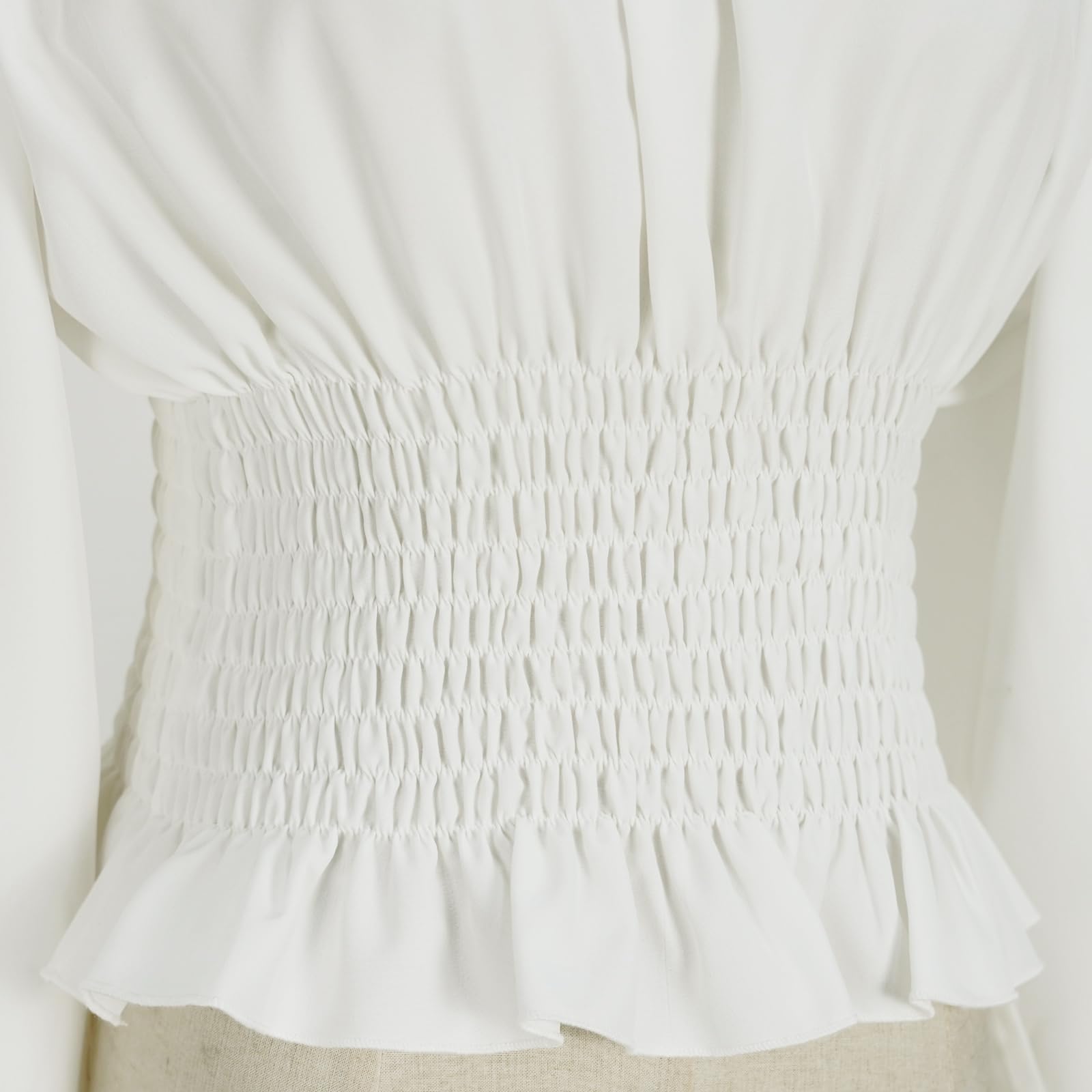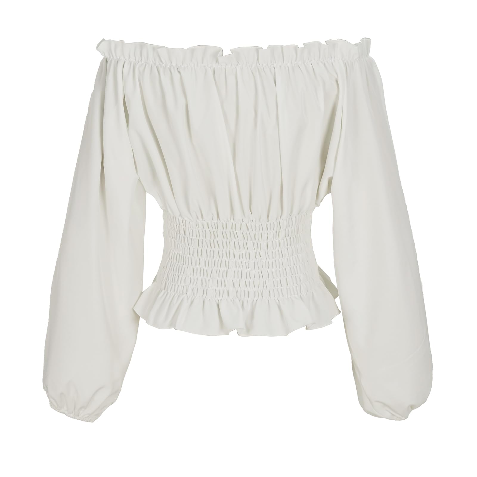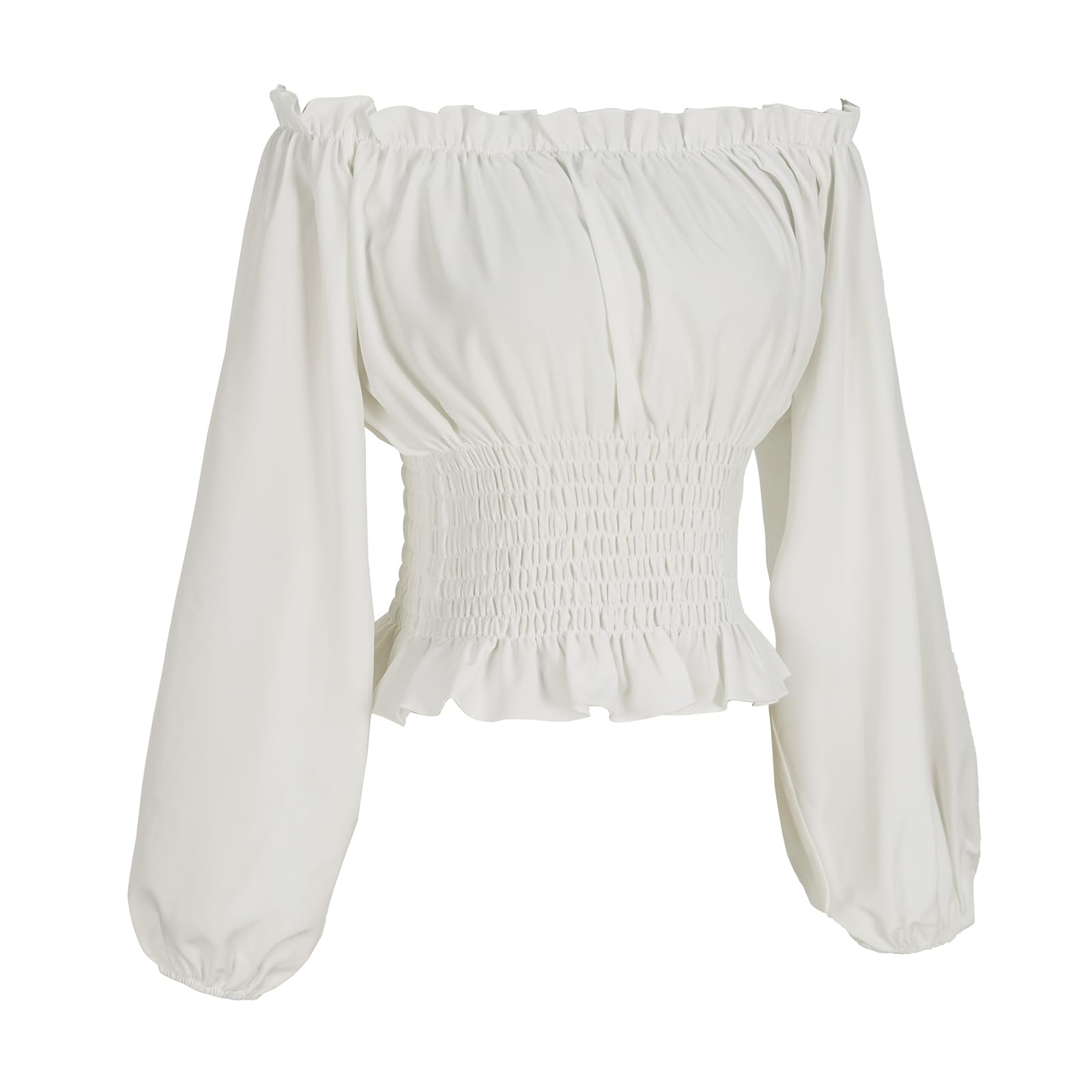 Style: Elastic ruffle details on cuff, puff sleeve and waist. Sexy off shoulder high smocked waist women's renaissance blouse .
