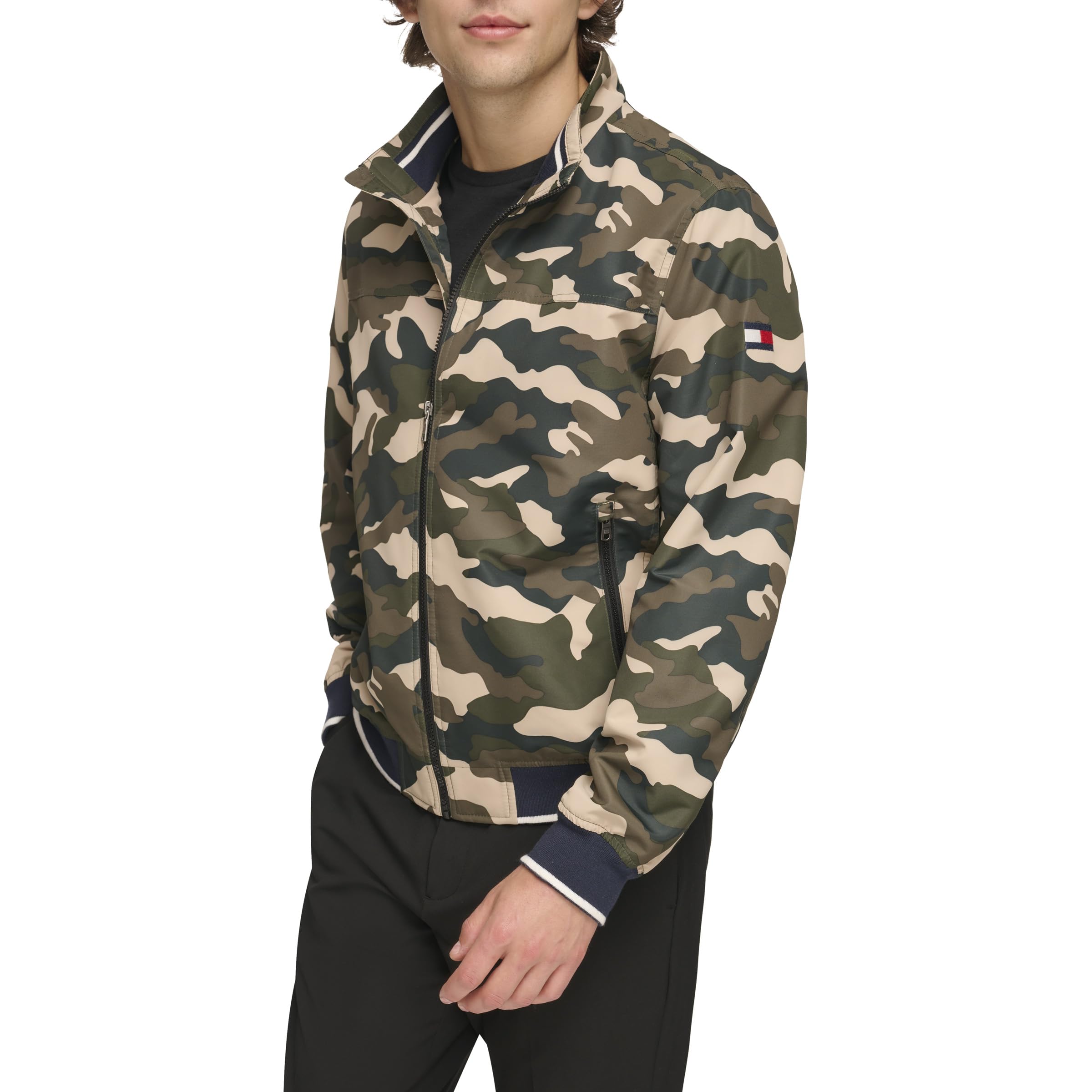 Preppy zip-front bomber featuring standing collar with "HILFIGER" screenprint at back