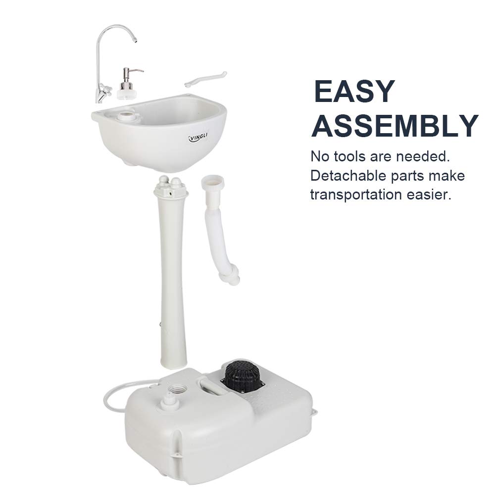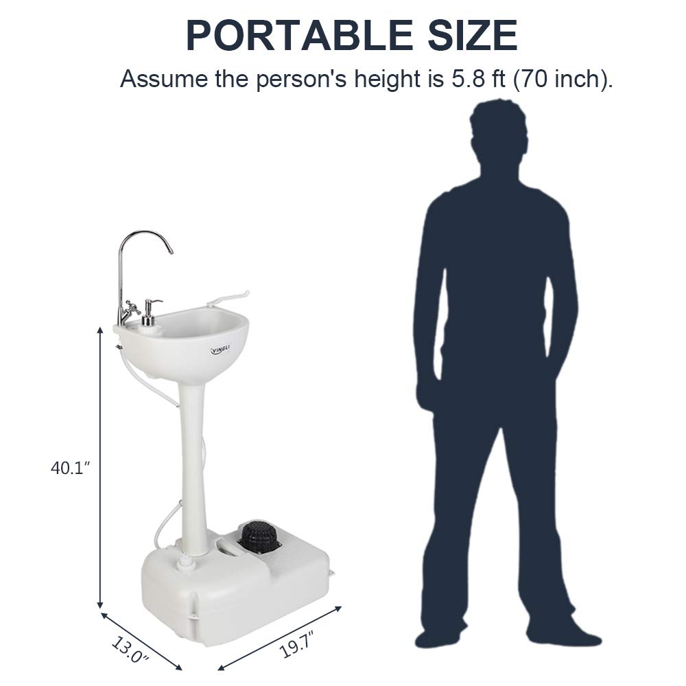 ✔NO PLUMBING NEEDED: With upgraded faucet switch, water can be controlled manually. New design meets both indoor and outdoor needs. No plumbing required when used in garden connected with garden pipe. Also it could be used independently or cooperated with portable toilet or extra water tank