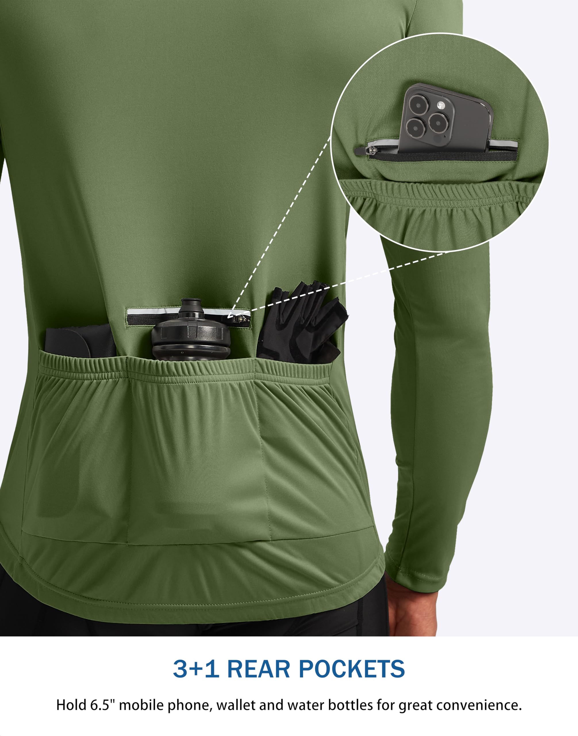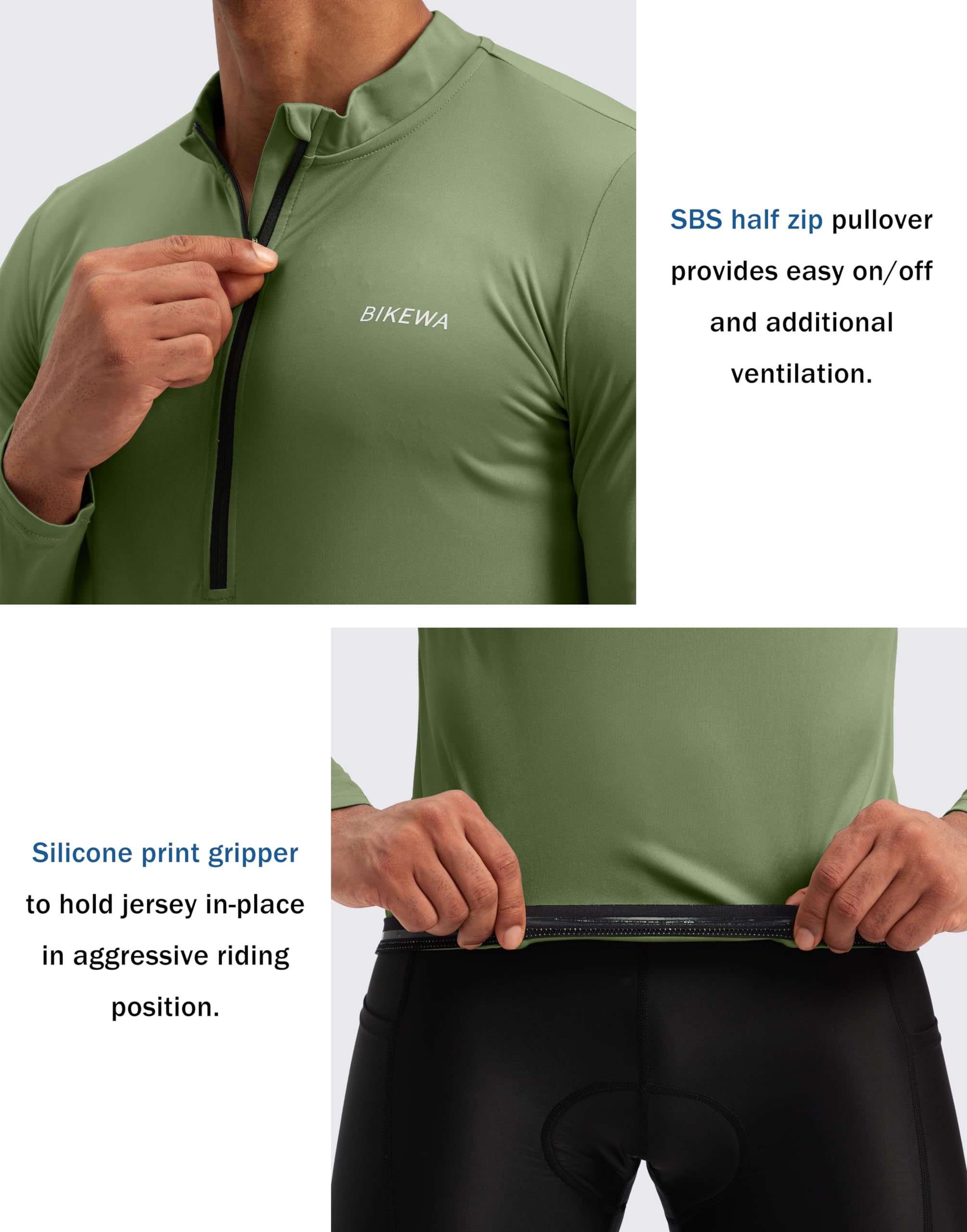 Easy Wear & Silicone Gripper Hems: 11 inch SBS half zip pullover provides easy on / off and additional ventilation, stand collar avoid pucker. Front and rear gripper to hold jersey in-place in aggressive riding position, preventing fluttering in the wind.
