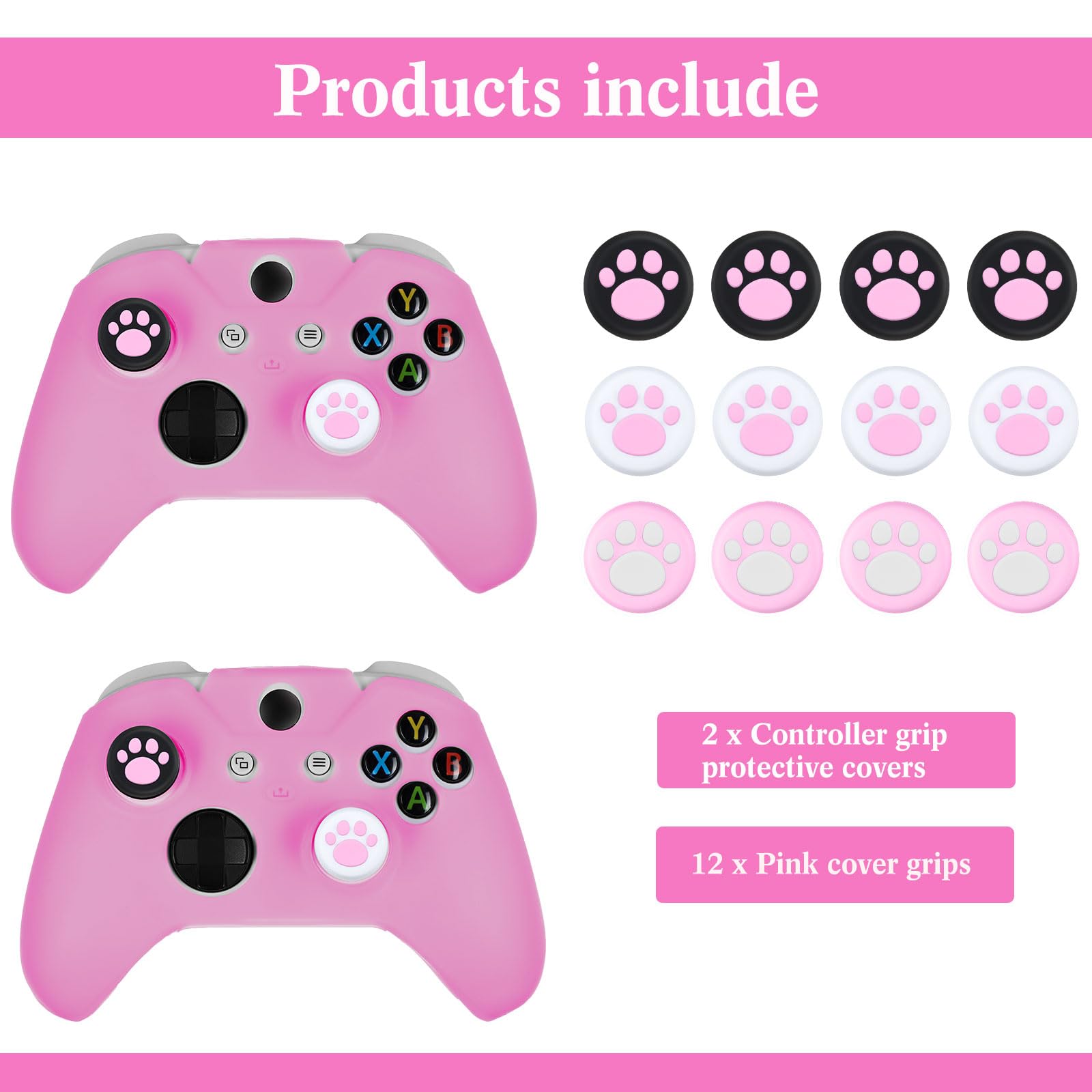 Package list: there are 2 controller skins, and 12 cover grips in the package, the color looks beautiful, the smooth grip is soft in hand and feels silky, anti-slip, sweat-free for a long period of game playing, the attentive combination will improve your gaming experience
