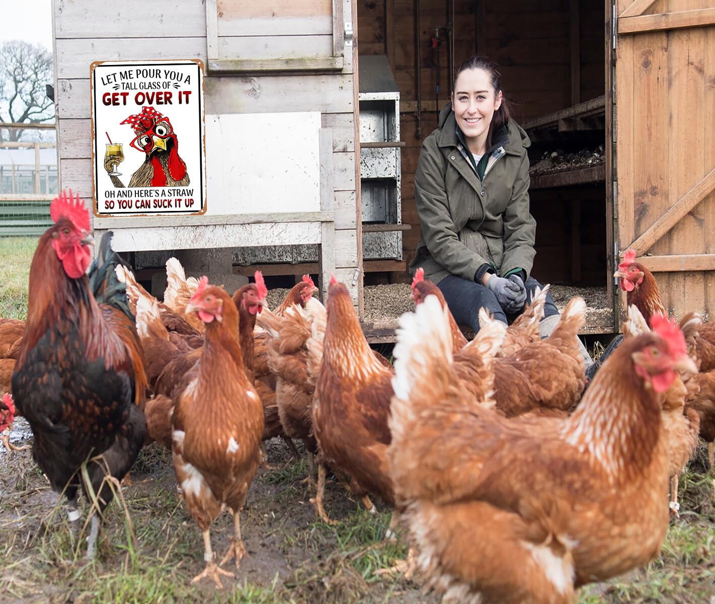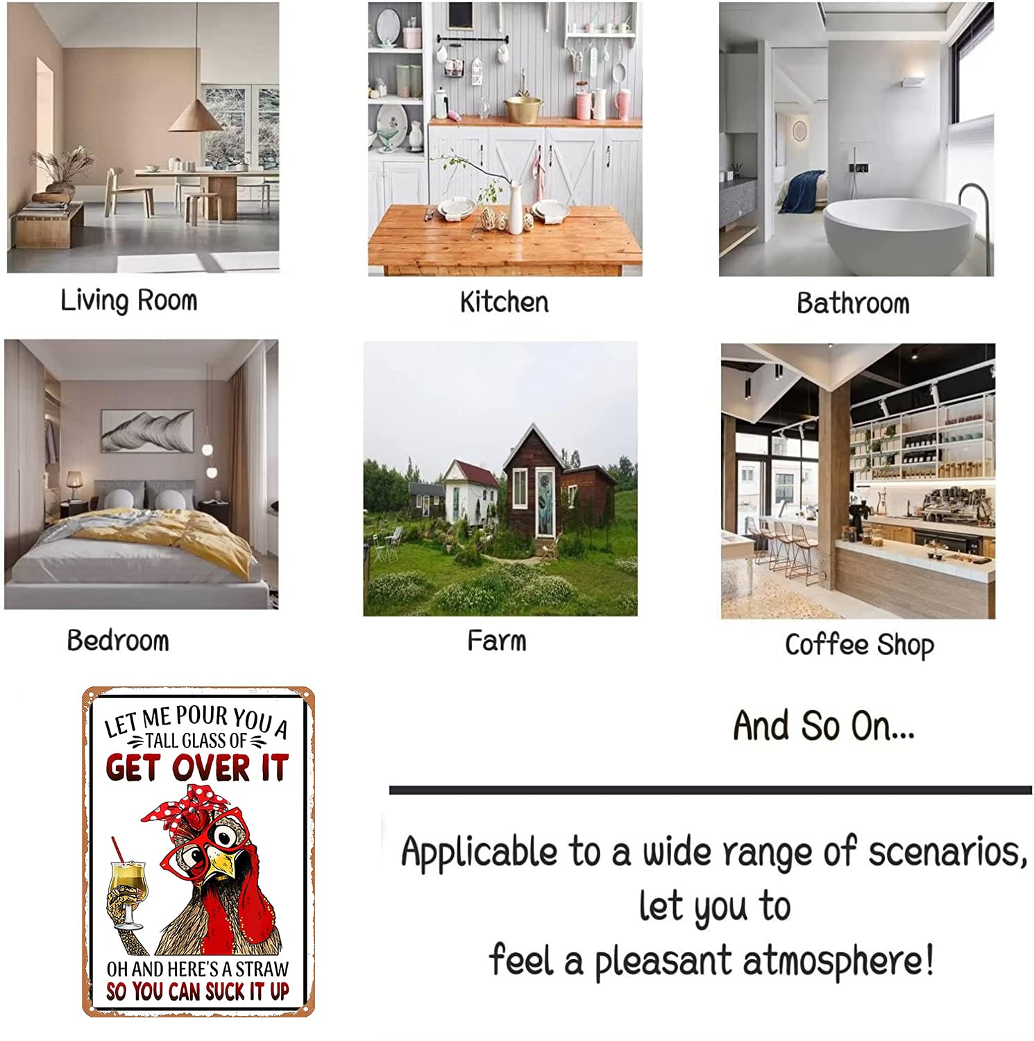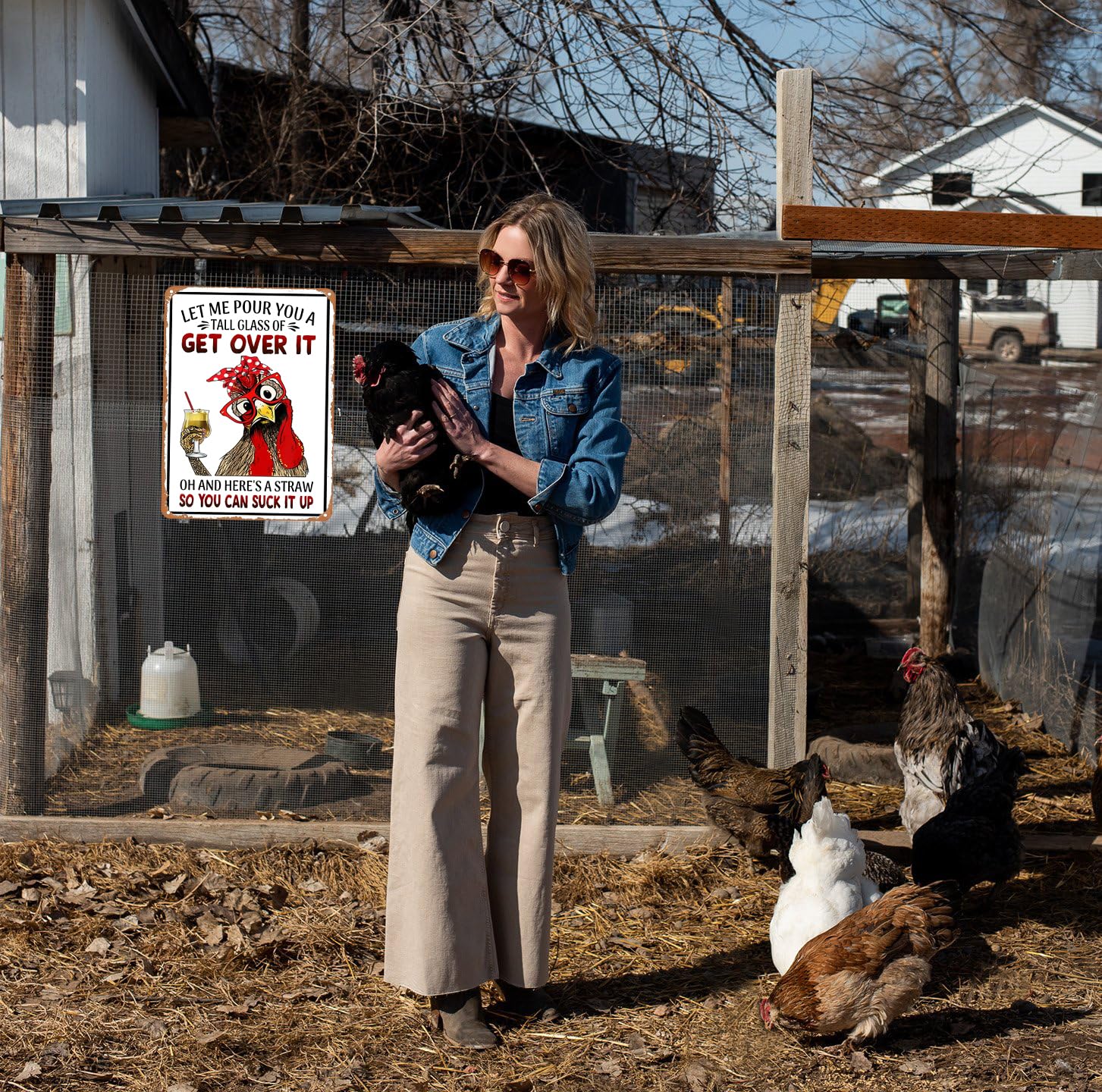 NOVELTY SIGN: This Funny Chicken Tin Sign Is Perfect For Decorating Your Home, Farmhouse, Chicken Coop, Kicthen, Garden Or Any Other Space. It Features A Vibrant And Eye-Catching Design That Will Surely Bring A Smile To Your Face And Add A Touch Of Humor To Your Decor.