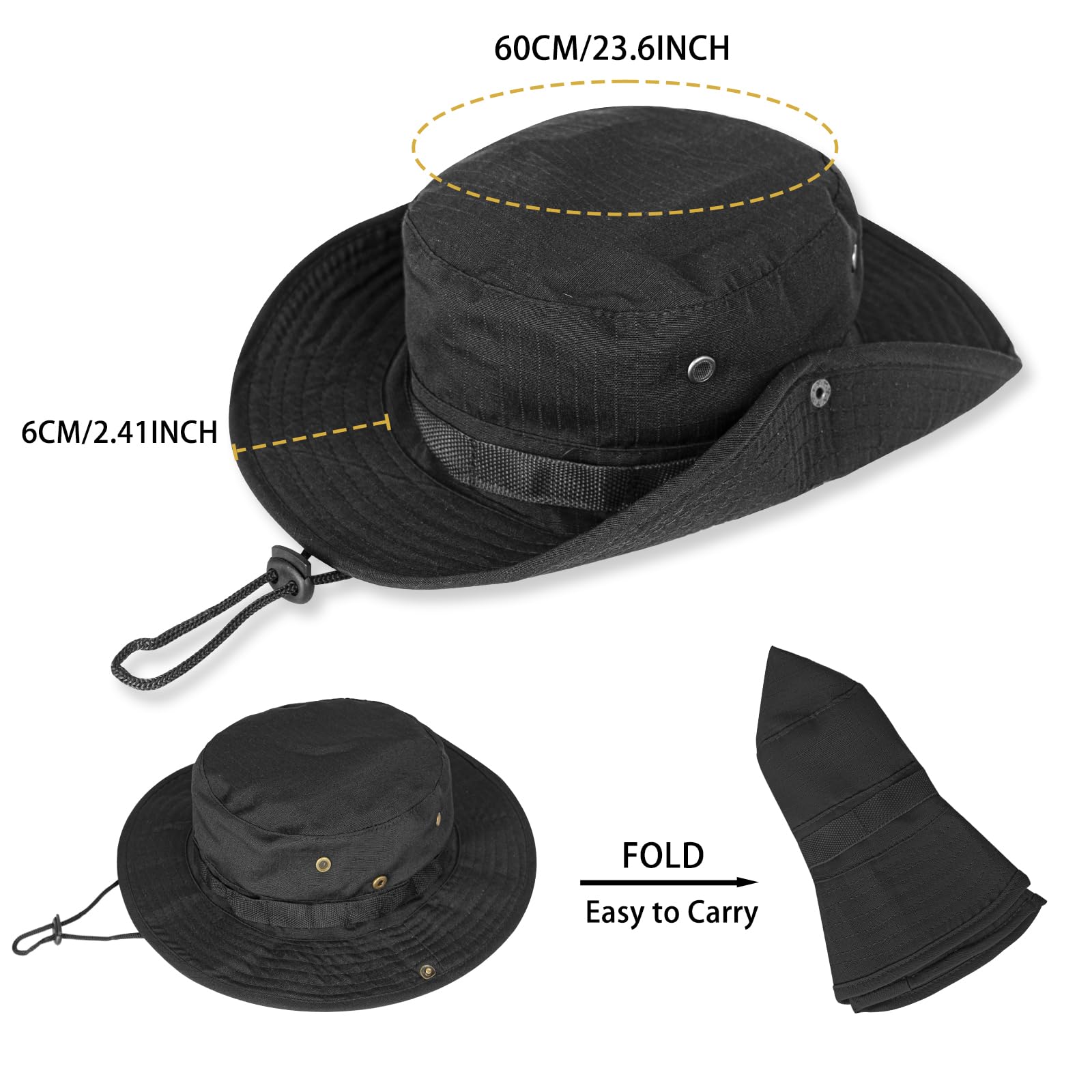 ADJUSTABLE AND FOLDABLE: This boonie hat is equipped with an adjustable chin drawstring to hold the hat in place on windy days and to ensure a secure fit. Our hat is made by High-quality material, light weight and comfortable. The hat can be folded into a small piece, which is very convenient to put it in your bag or pocket.