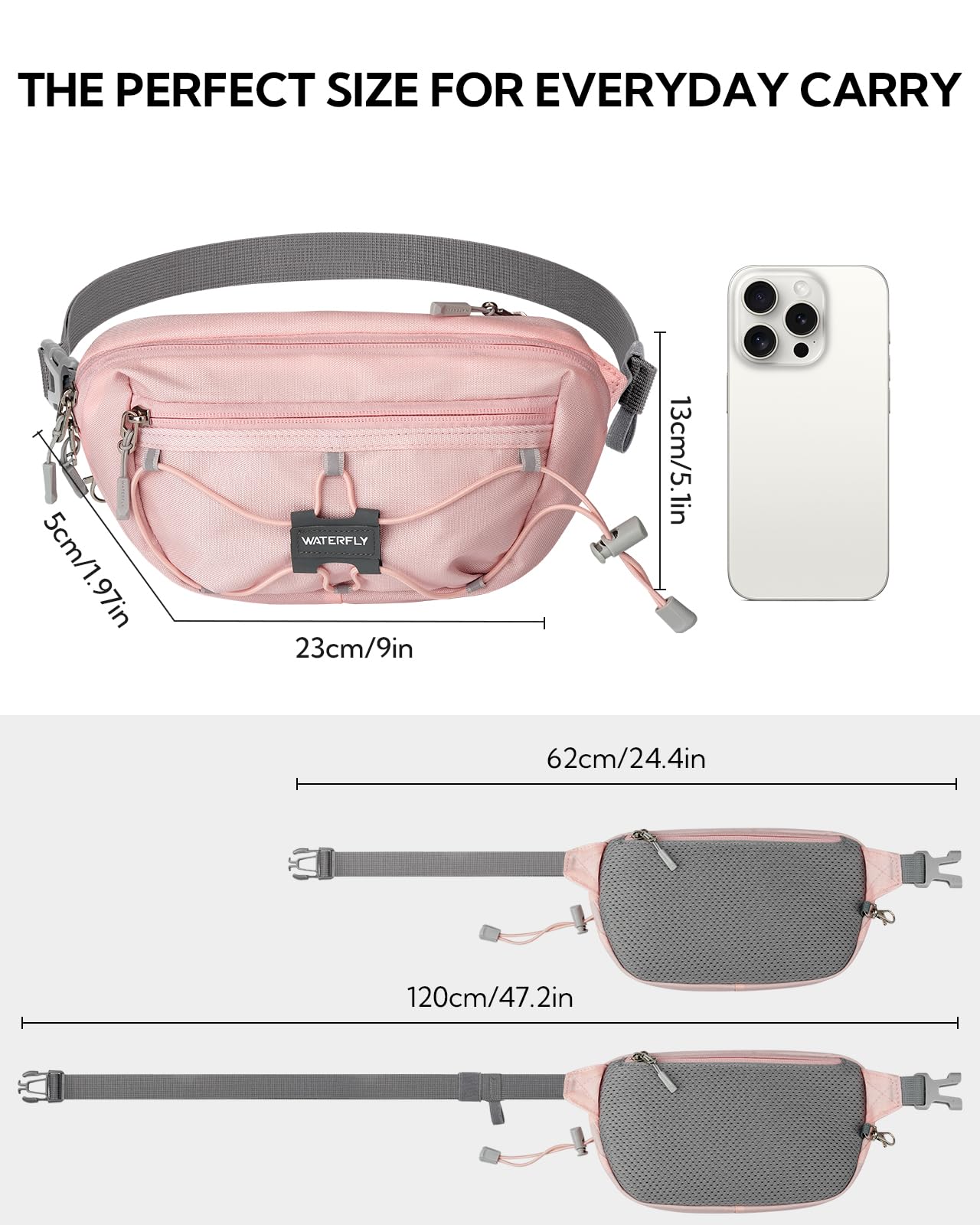 Compact Size with Adjustable Fit – Measures 9in x 5.1in x 1.97in, with an adjustable strap from 24.4in to 47.2in to fit all body types. Lightweight yet spacious enough to hold your phone, wallet, passport, and more.