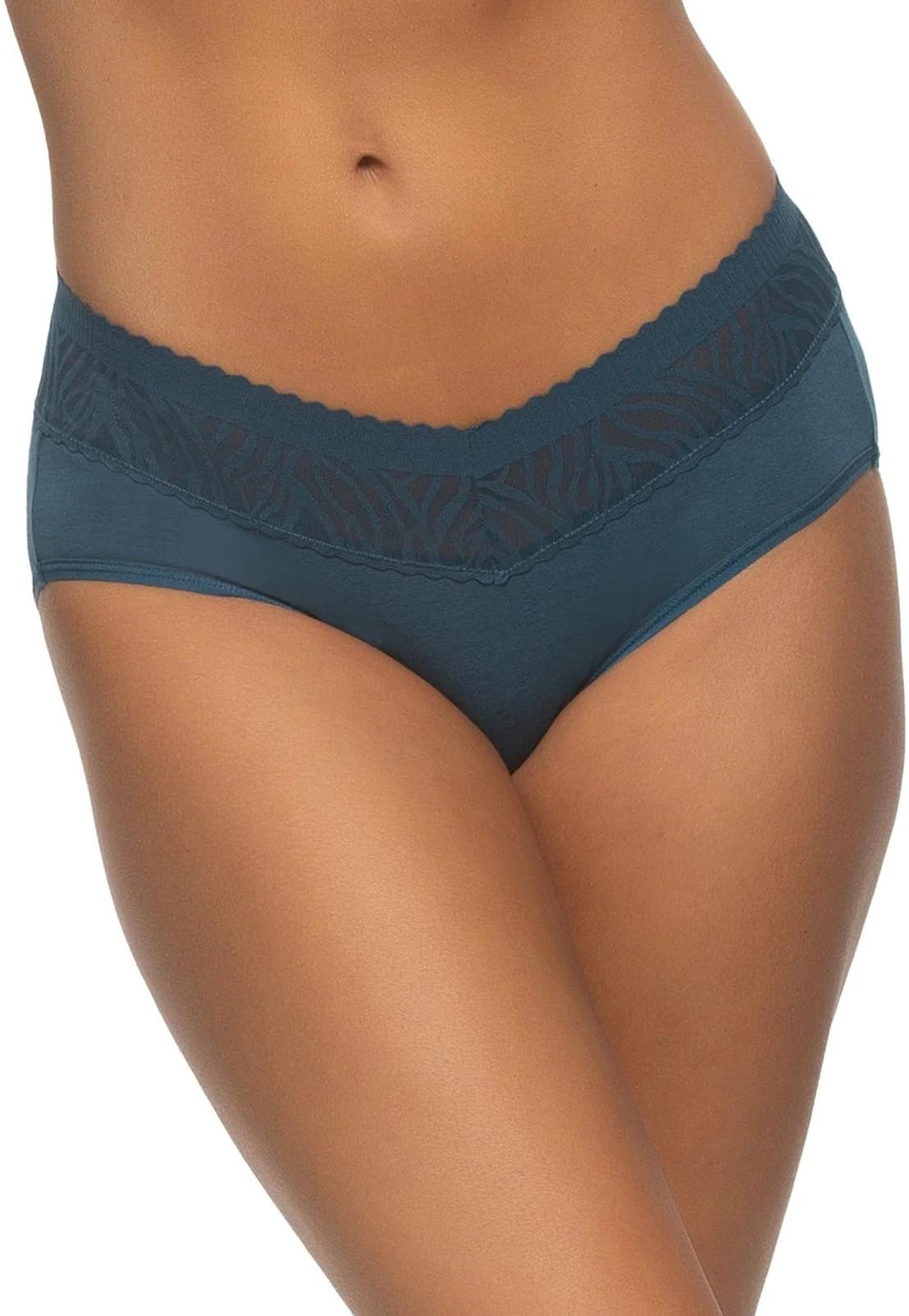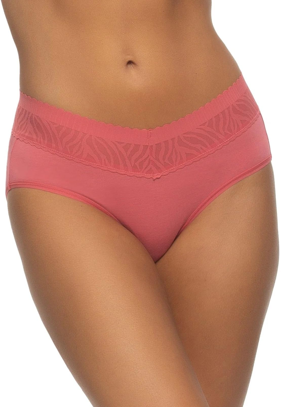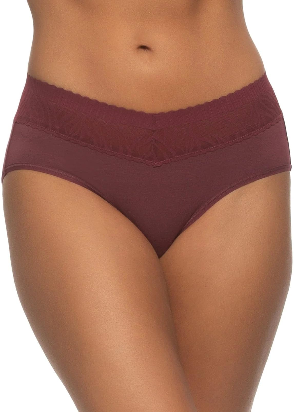 Description Our Stay In Place Hipster 5-Pack offers full back coverage with a flat lace waistband that stays put without digging in or rolling, ensuring a smoother look and ultimate comfort. Made from breathable cotton/modal fabric, this mid-waist style is sure to become your new favorite. Featuring stay-in-place technology, a pinch-free, no-dig waistband, and a tagless design, these hipsters offer unbeatable comfort and full coverage. Fabric Content: Body: 56% Cotton, 38% Modal, 6% Spandex Waist band: 72% Nylon, 28% Spandex Sizing: Size Conversion: Small = 4-6│Medium = 8-10│Large = 10-12│X-Large = 14-16 Waist (in): Small = 26½-28 | Medium = 29-30½ | Large = 31½-33 | X-Large = 34-35½ Hip (in): Small = 36½-38 | Medium = 39-40½ | Large = 41½-43 | X-Large = 44-45½