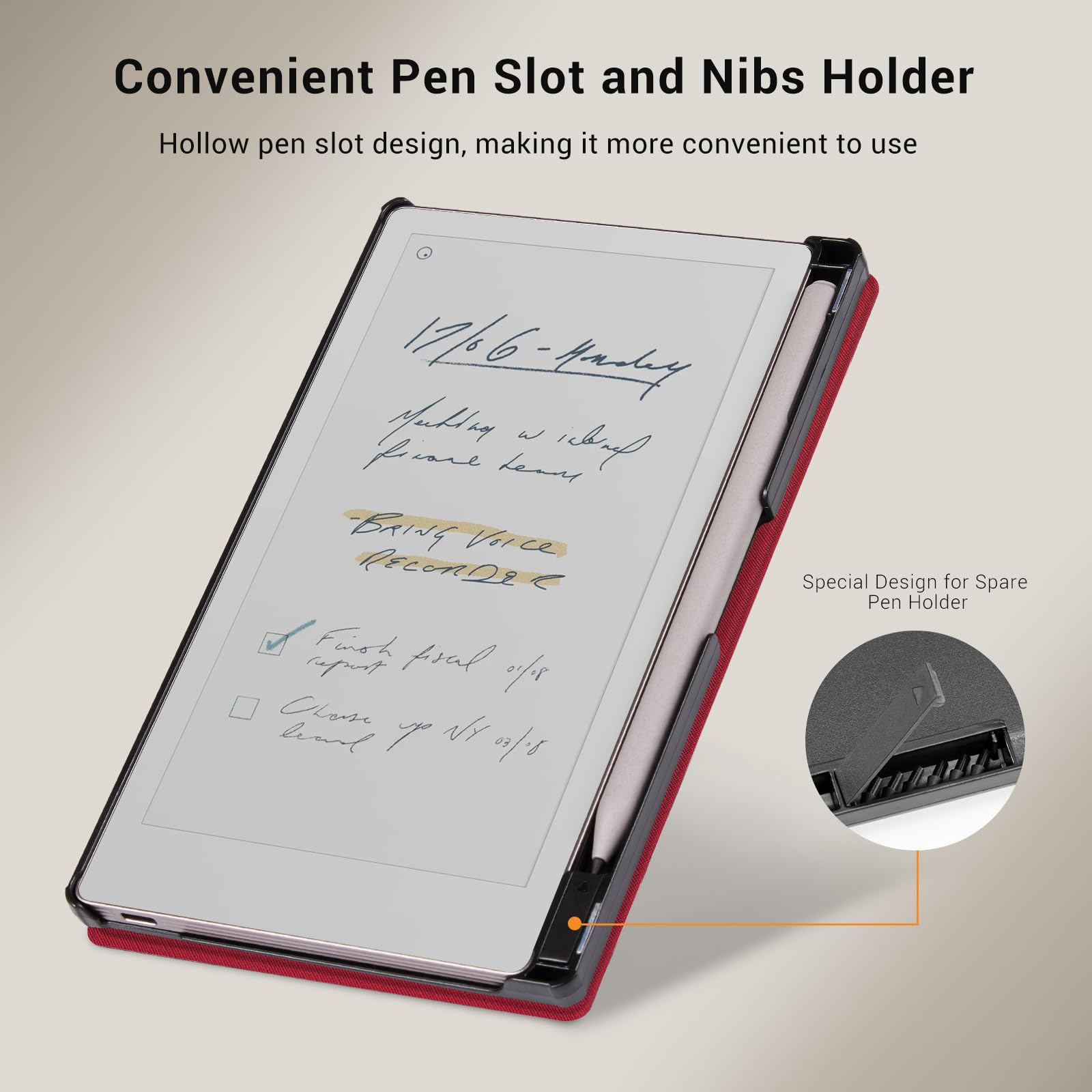 【Built-in Pen Holder and Nibs Holder】: According to the pen's adsorption making a slot to gives the marker/marker plus a home. Keep your stylus secure, and the small refill holder allows easy access, simple and practical