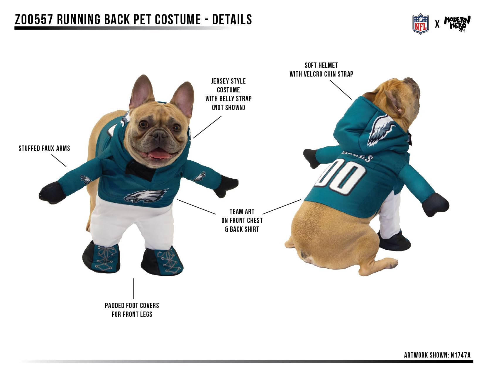 Let your pet unleash their inner hero with the NFL Official Licensed Modern Hero pet costume. With its authentic helmet and body suit, your pet will steal the show at tailgates and game-day parties!